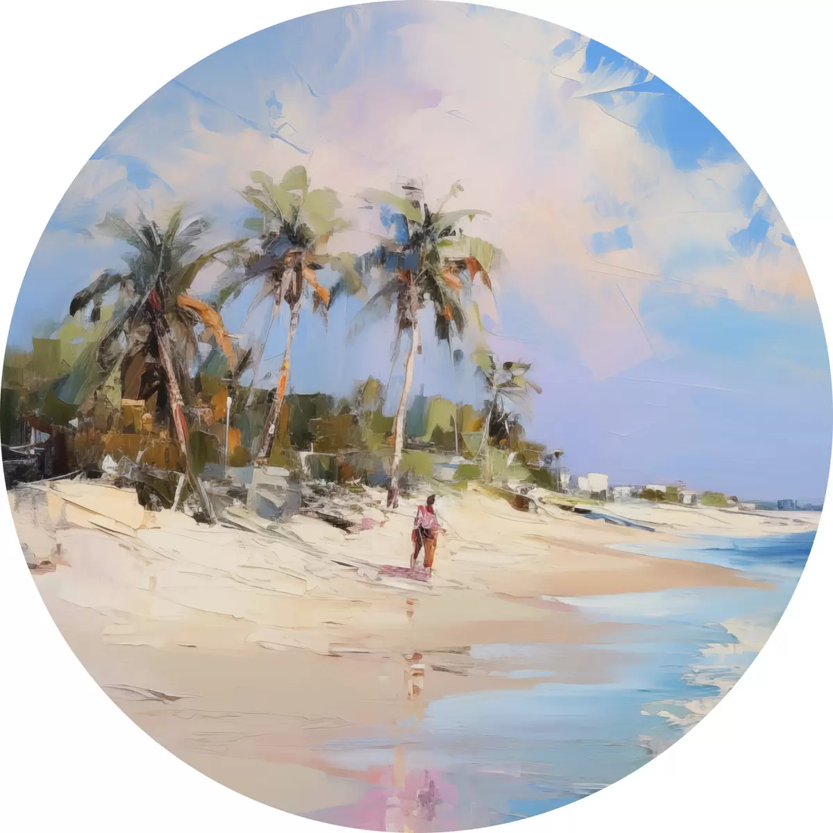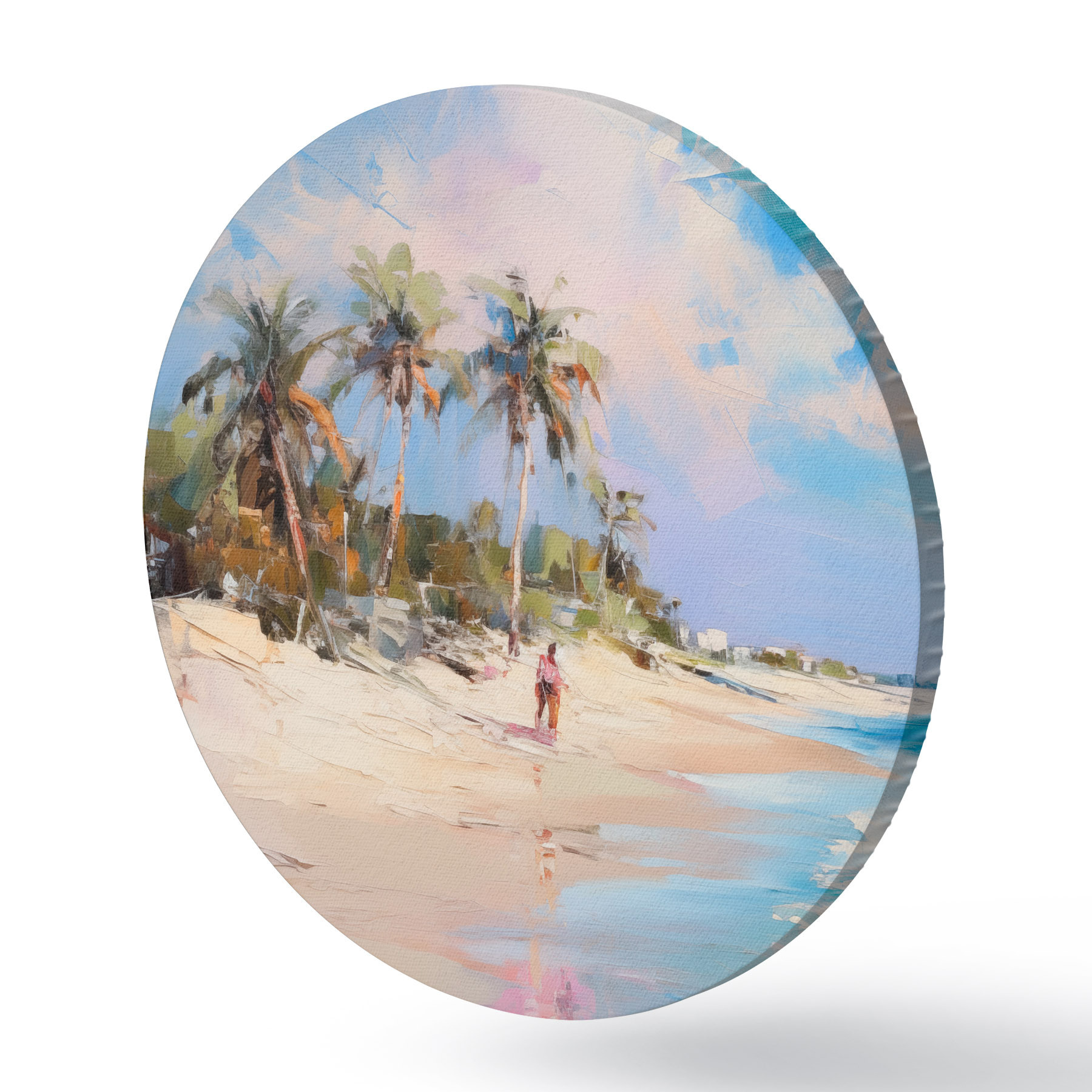 Tableaux rondes Paysage abstrait, une plage avec des palmiers, une journée ensoleillée avec un ciel bleu et quelques nuages Nr r46284