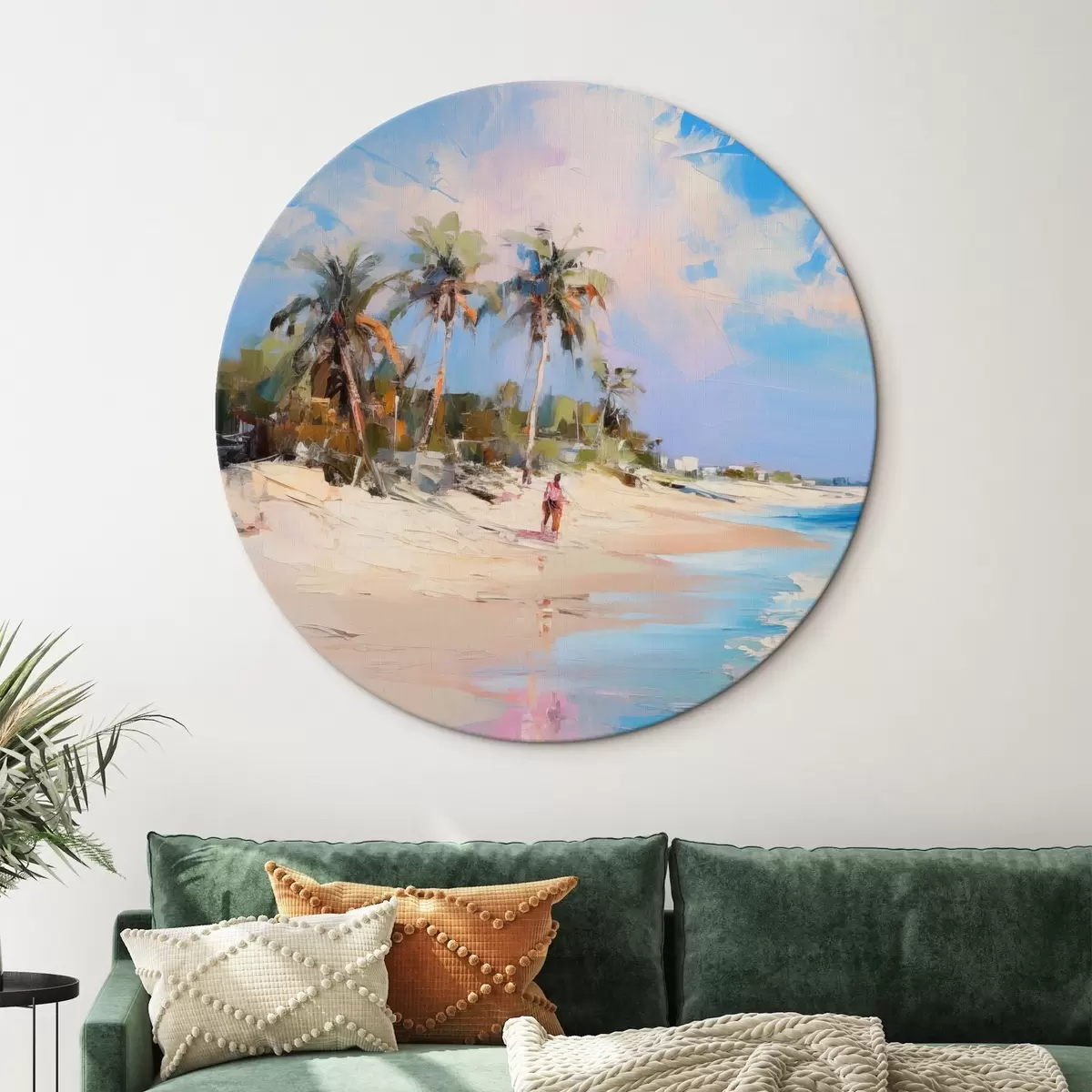 Tableaux rondes Paysage abstrait, une plage avec des palmiers, une journée ensoleillée avec un ciel bleu et quelques nuages Nr r46284