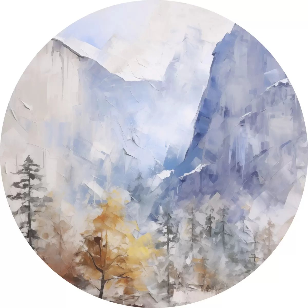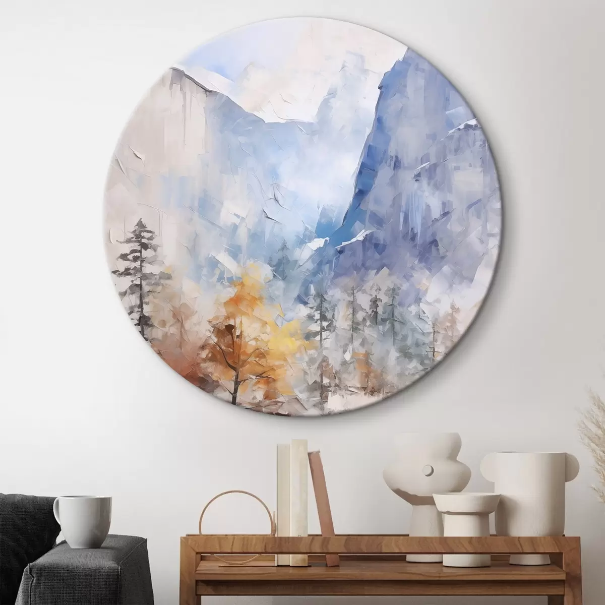 Tableaux rondes Paysage abstrait d'une forêt devant des montagnes r46298