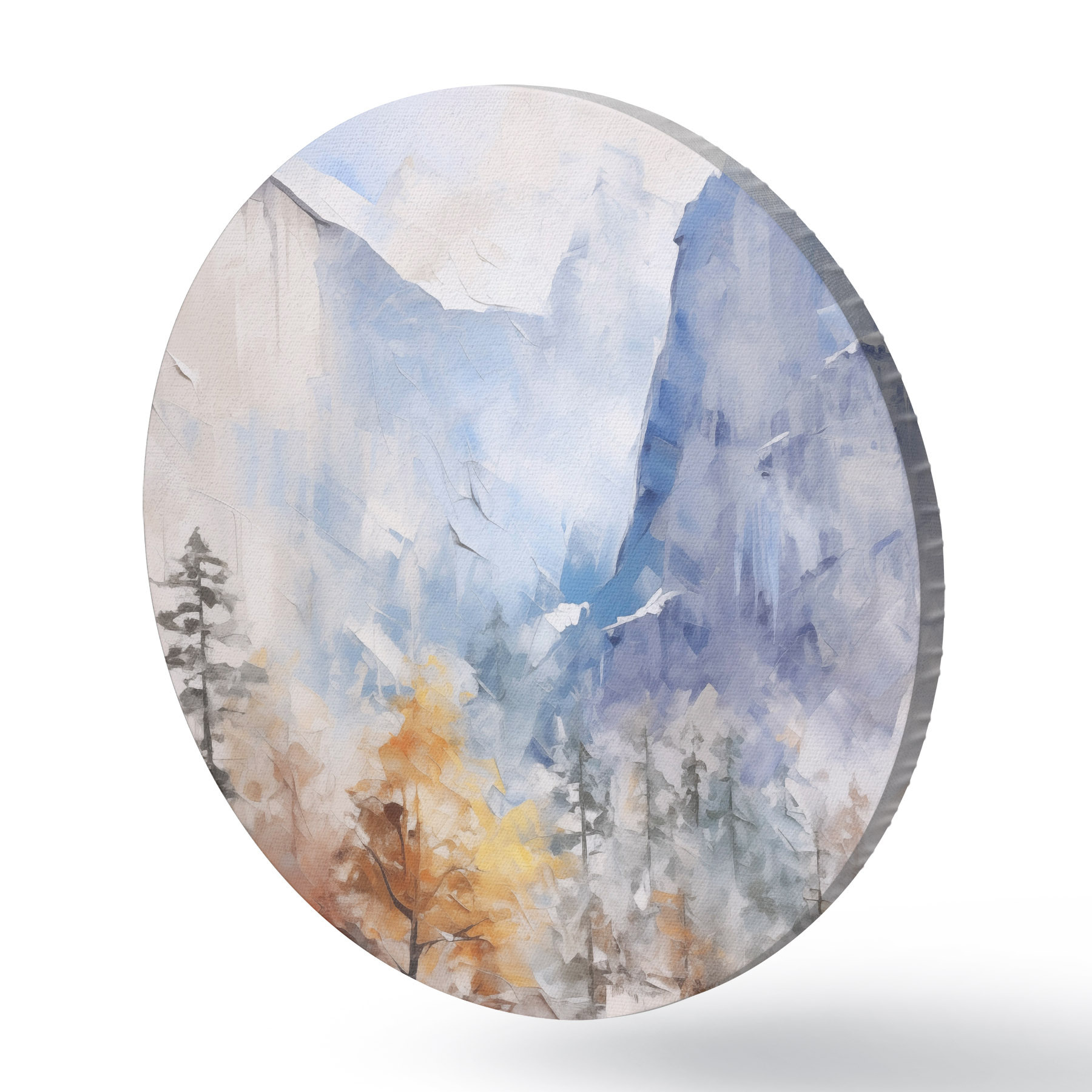 Tableaux rondes Paysage abstrait d'une forêt devant des montagnes Nr r46298