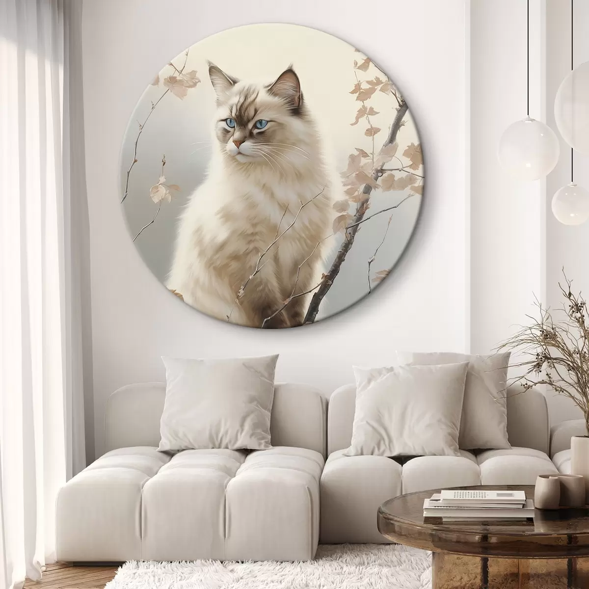 Tableaux rondes Un chat sur une branche d'arbre r46300