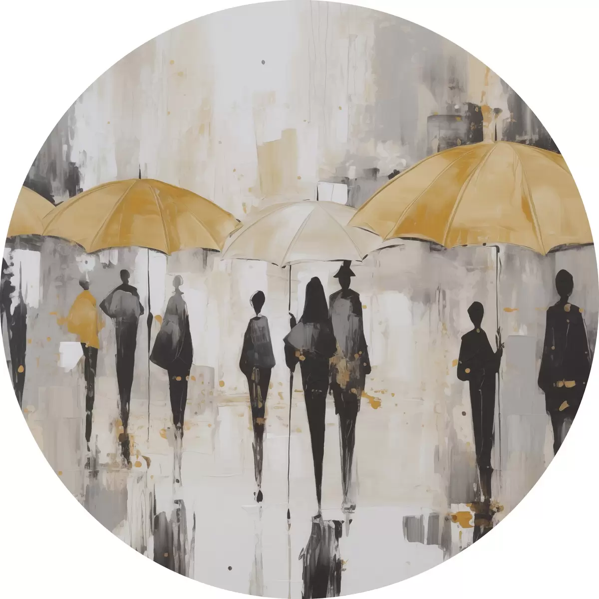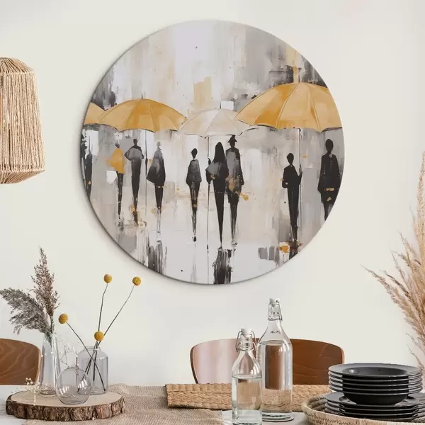 Tableaux rondes Abstraction de personnes avec des parapluies Nr r46304