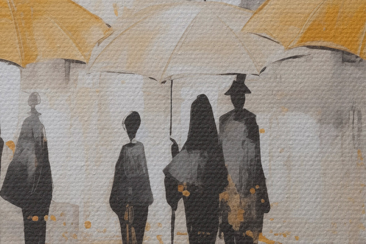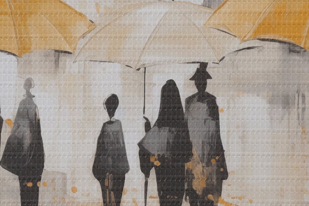 Tableaux rondes Abstraction de personnes avec des parapluies Nr r46304