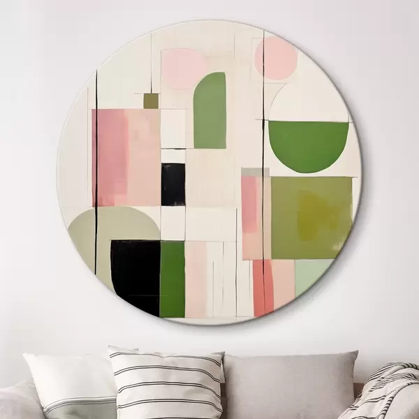 Tableaux rondes Art abstrait avec des blocs et des lignes colorés r46313