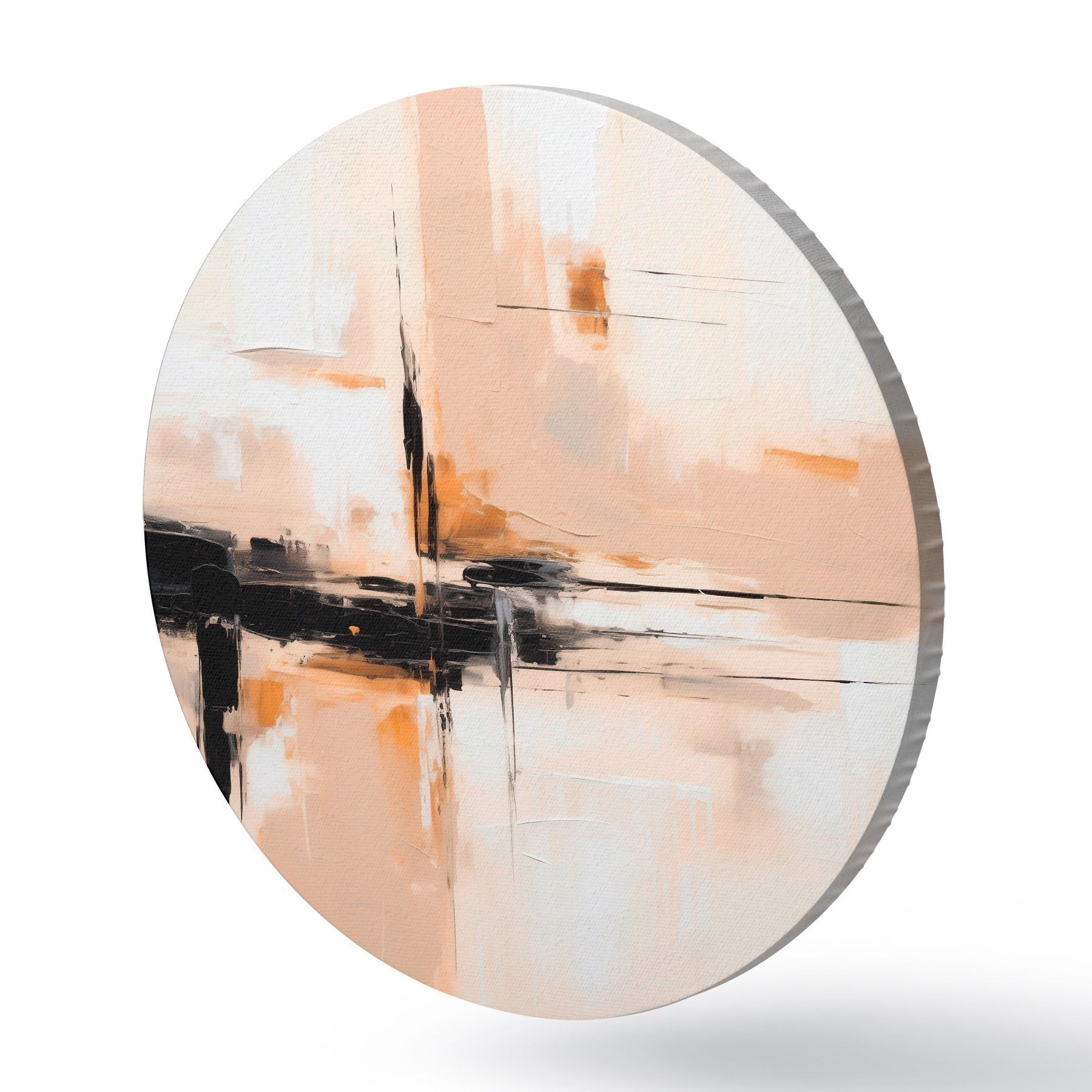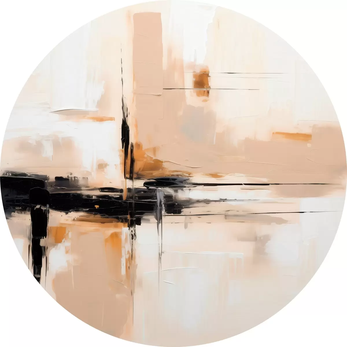 Tableaux rondes Beige et noir, abstraction verticale dans un style minimaliste Nr r46326