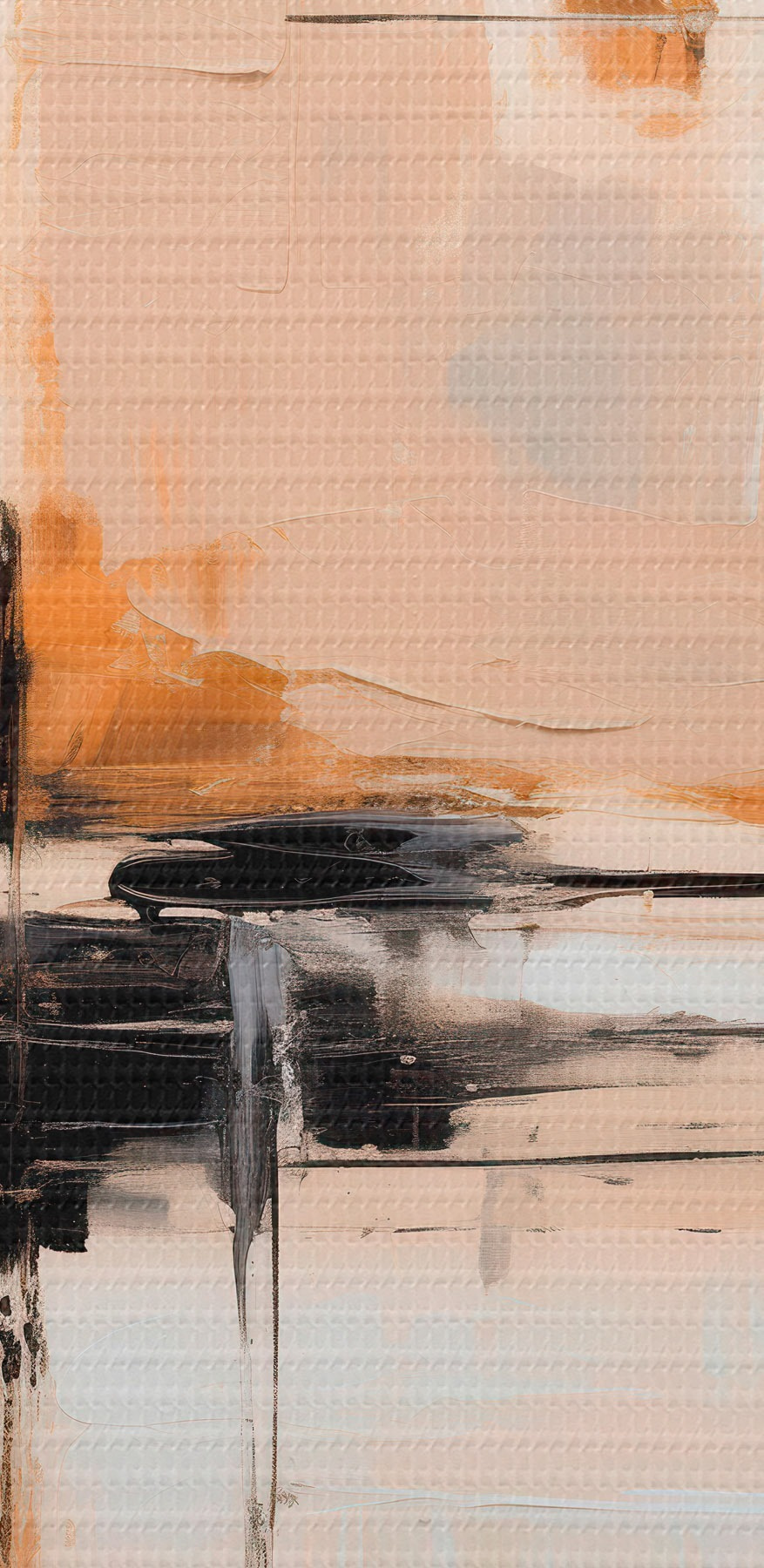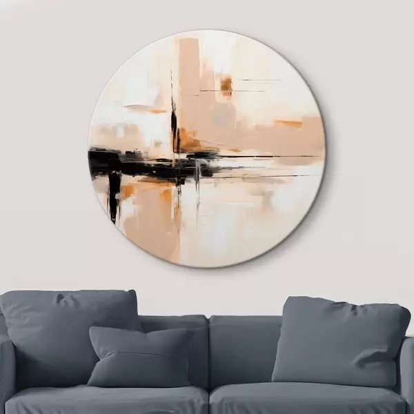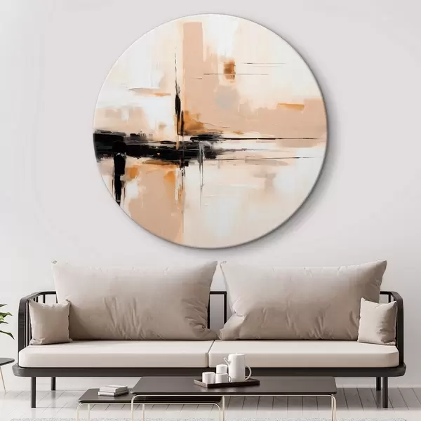 Tableaux rondes Beige et noir, abstraction verticale dans un style minimaliste r46326