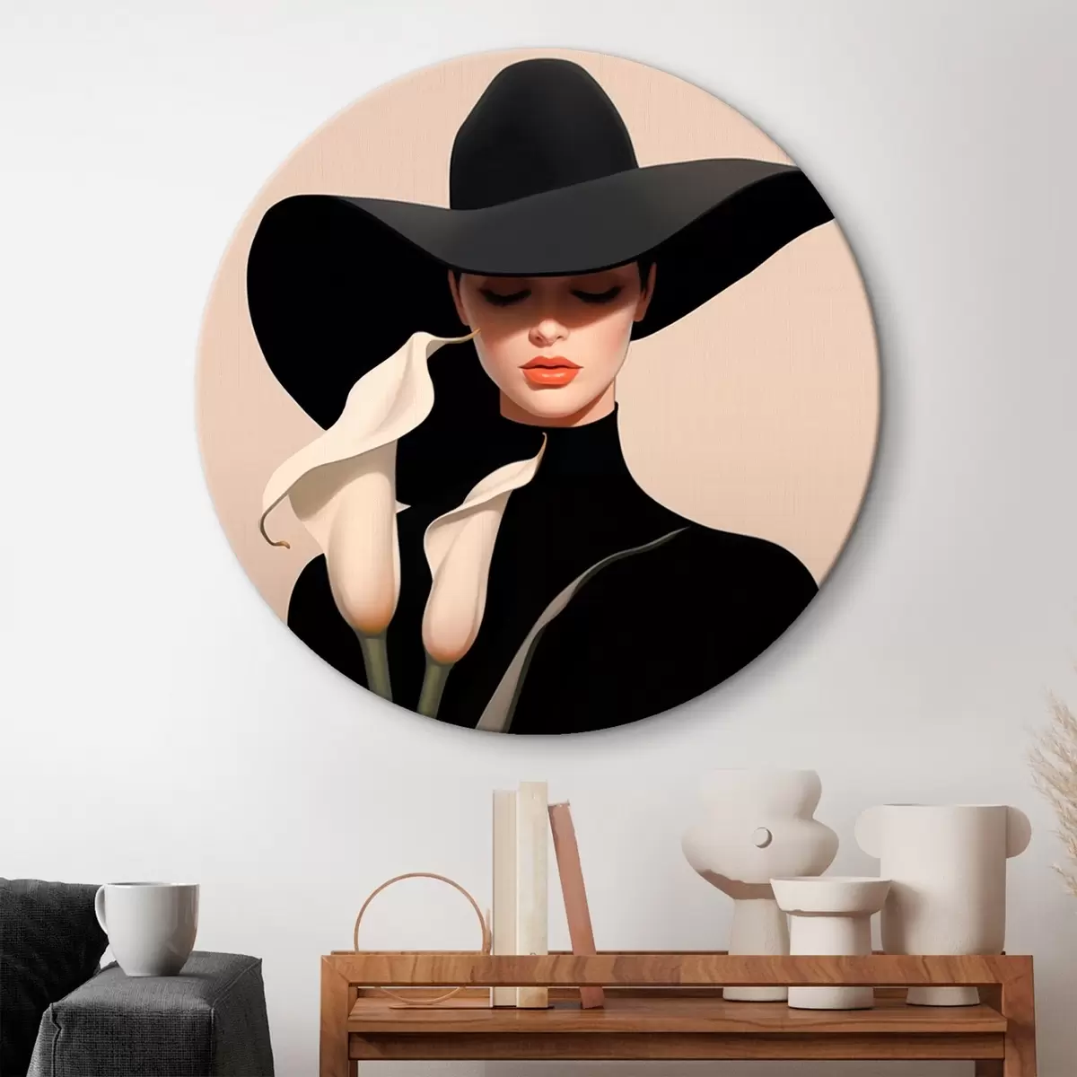Tableaux rondes Fille au chapeau avec des calas Nr r46420