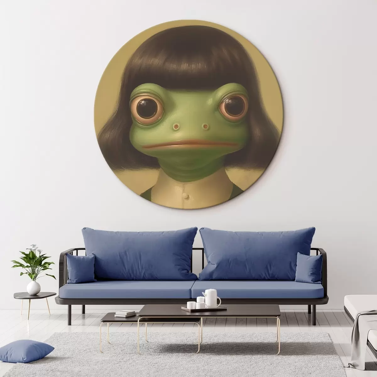 Tableaux rondes Fille grenouille style vintage Nr r46458