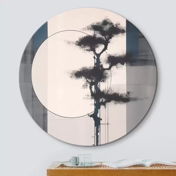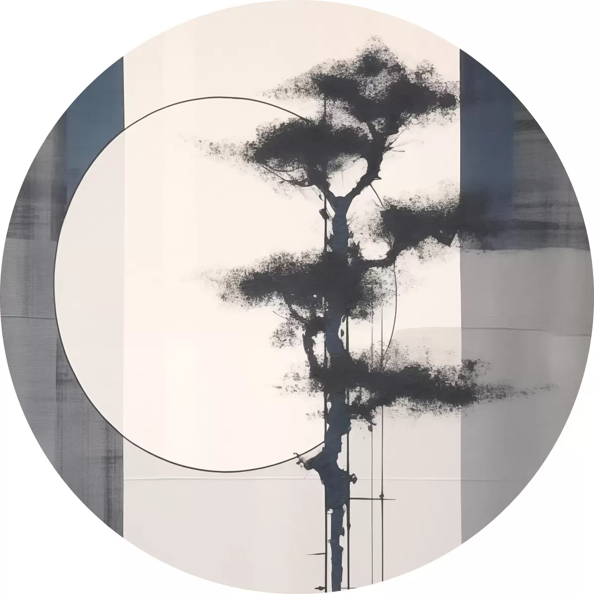 Tableaux rondes Abstraction. Arbre et soleil. Minimalisme japonais. Nr r46463