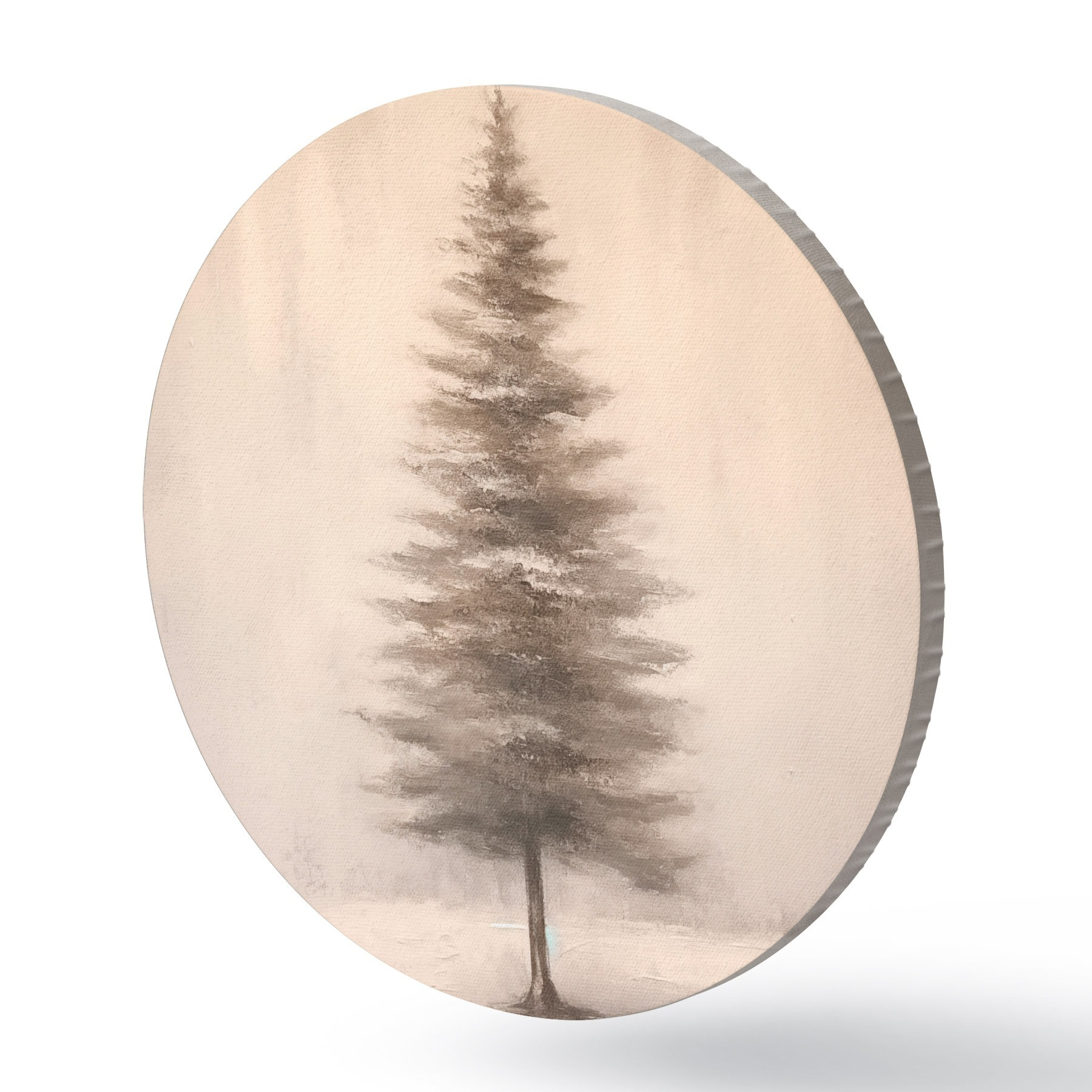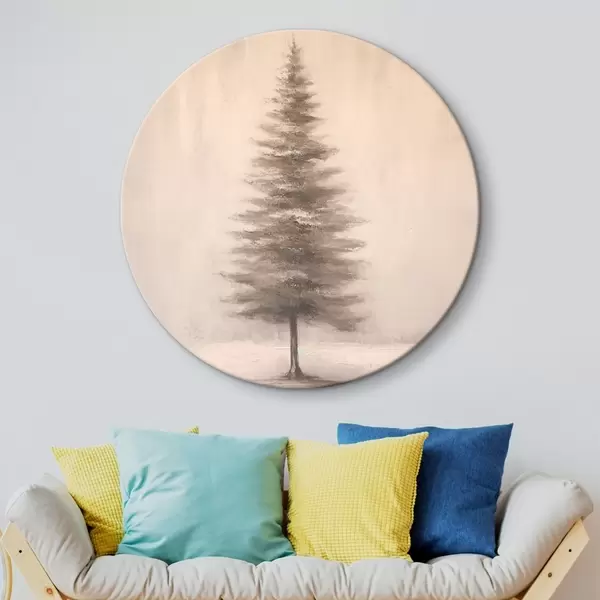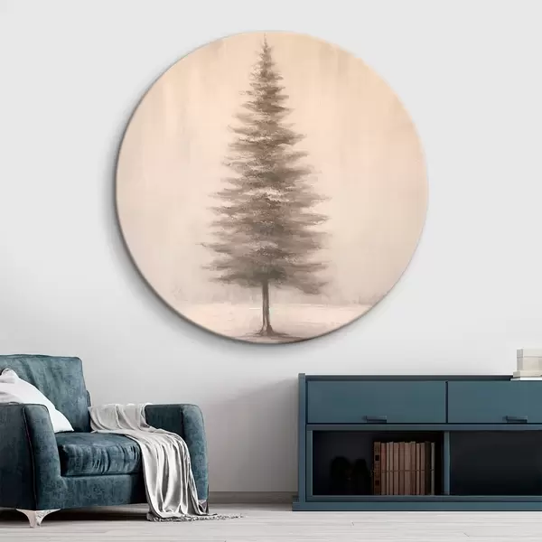 Tableaux rondes Sapin monochrome. Paysage hivernal minimaliste. r46465