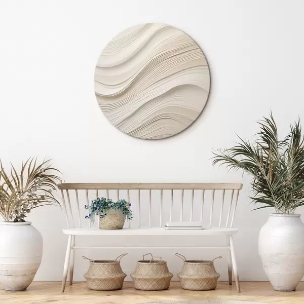 Tableaux rondes Vagues en relief superposées dans des tons sable, texture douce Nr r46484