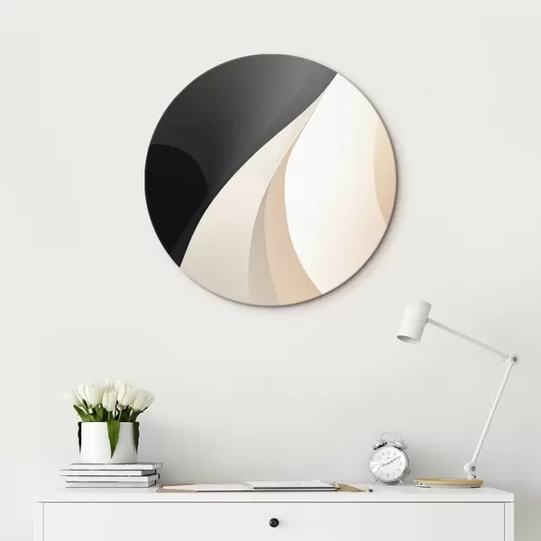 Tableaux rondes Courbes élégantes et superposées dans les tons charbon, ivoire et sable r46493