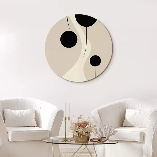Tableaux rondes Cercles minimalistes sur fond beige rehaussés de lignes fluides Nr r46496