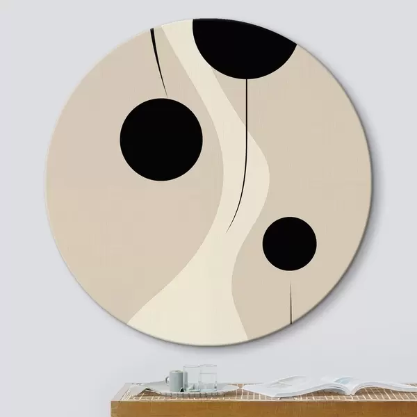 Tableaux rondes Cercles minimalistes sur fond beige rehaussés de lignes fluides r46496