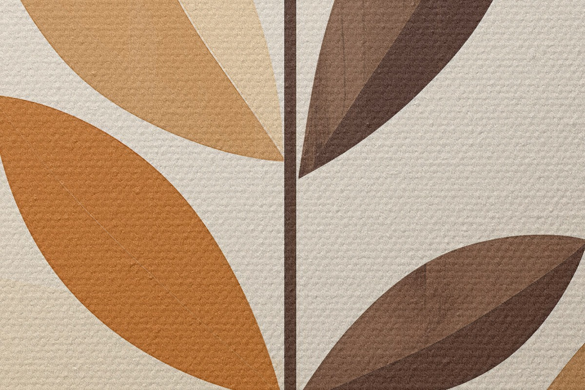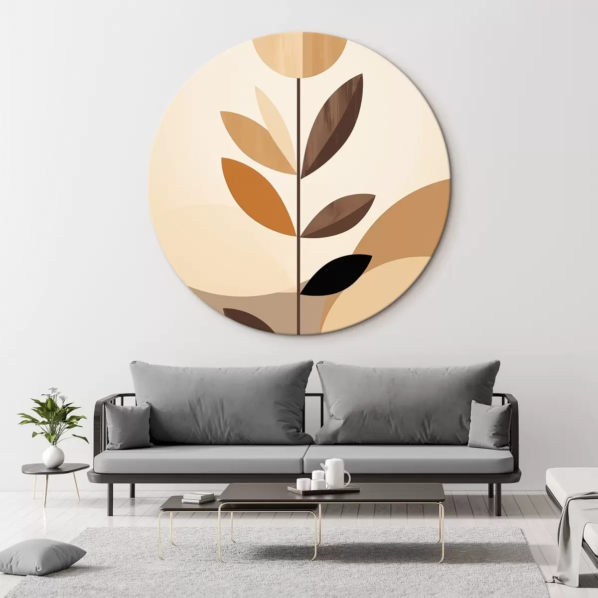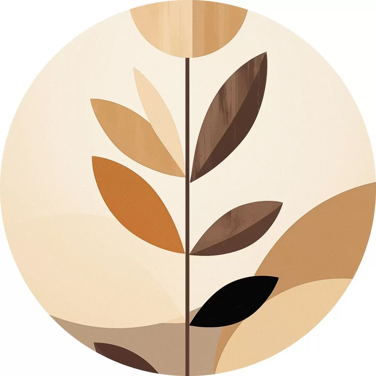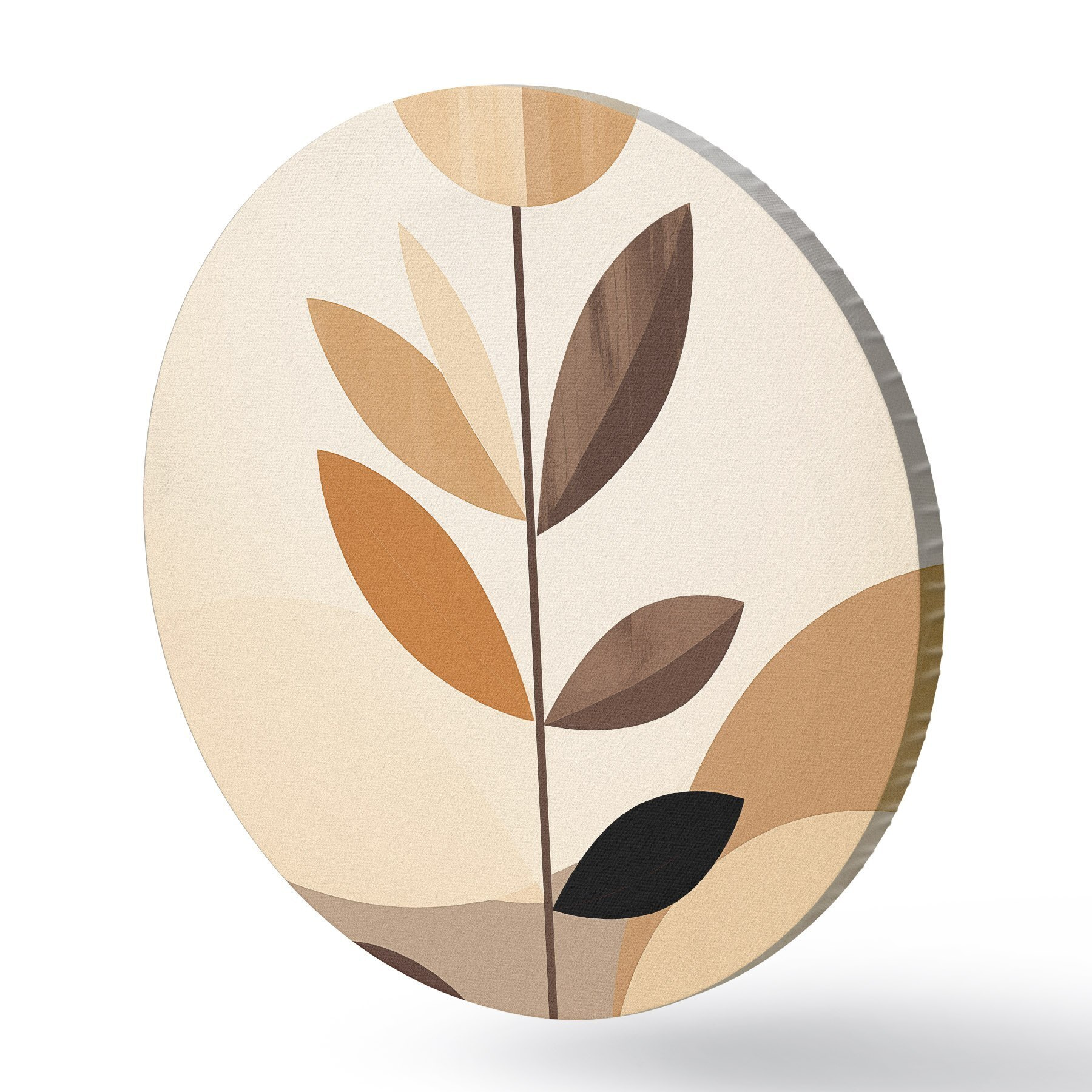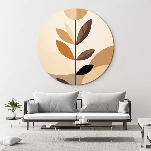 Tableaux rondes Fleur stylisée avec des feuilles géométriques dans des tons chauds r46500
