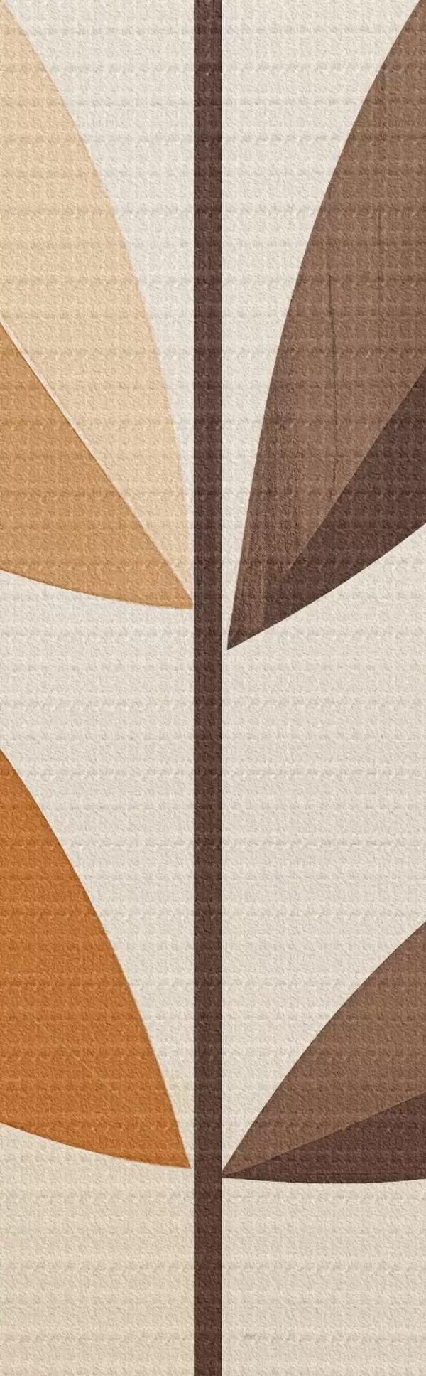 Tableaux rondes Fleur stylisée avec des feuilles géométriques dans des tons chauds r46500