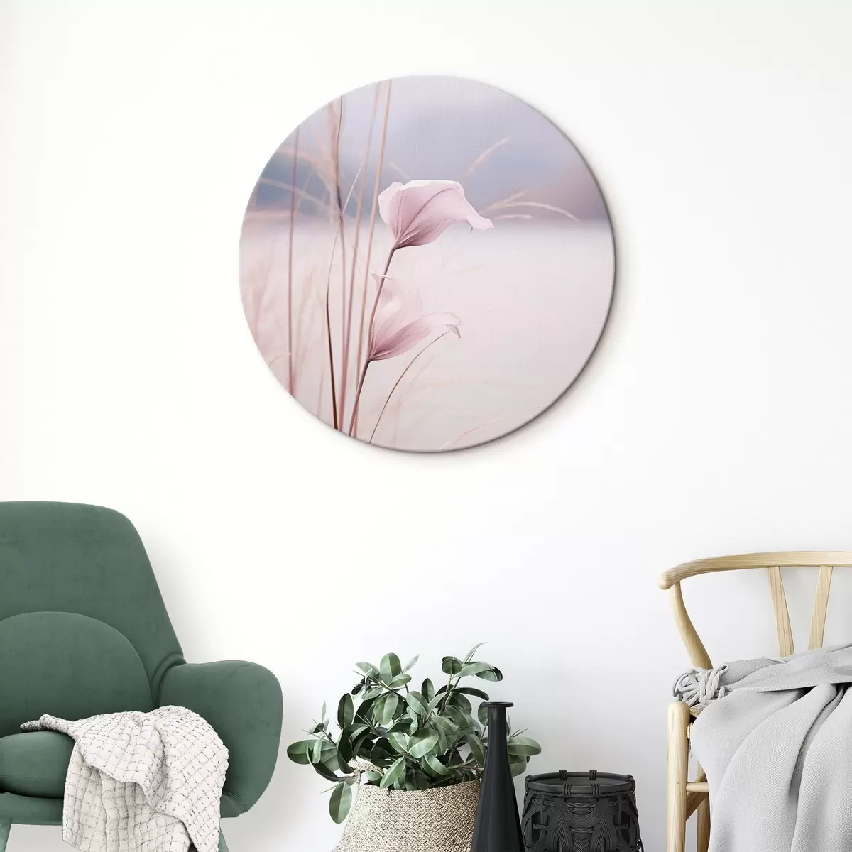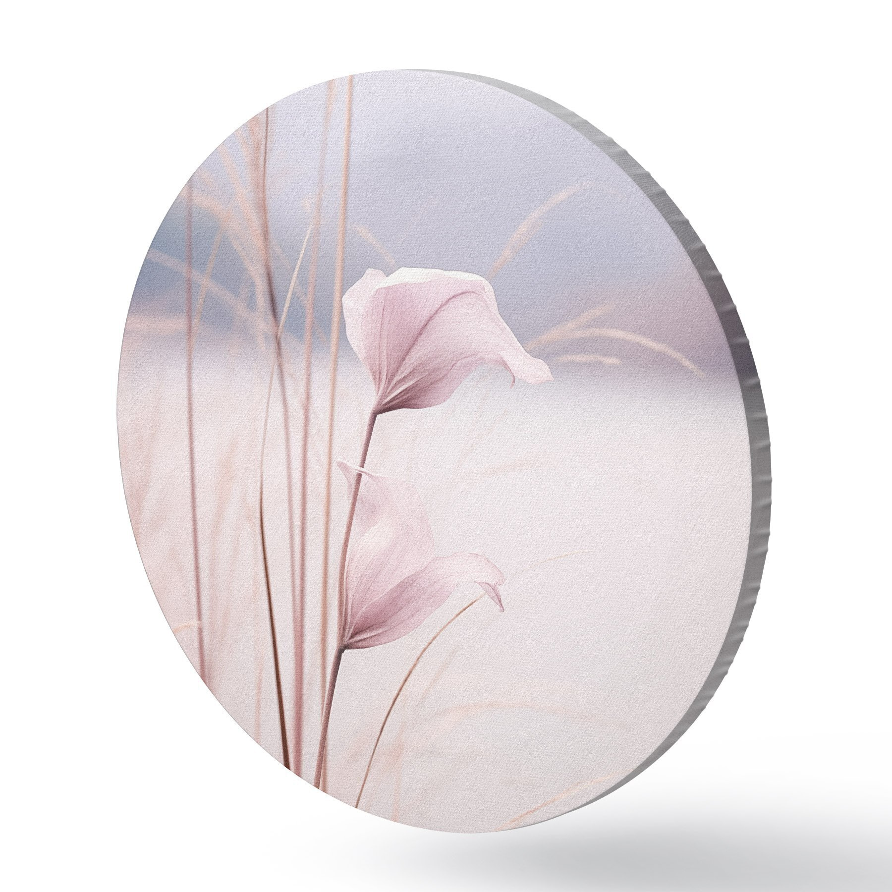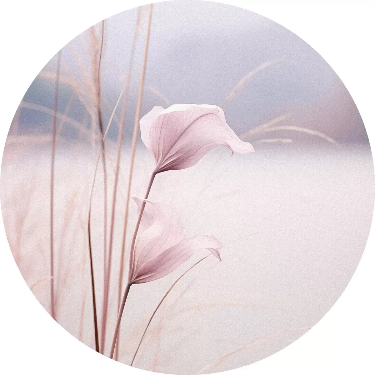 Tableaux rondes Délicates fleurs roses au bord d'un lac paisible Nr r46503
