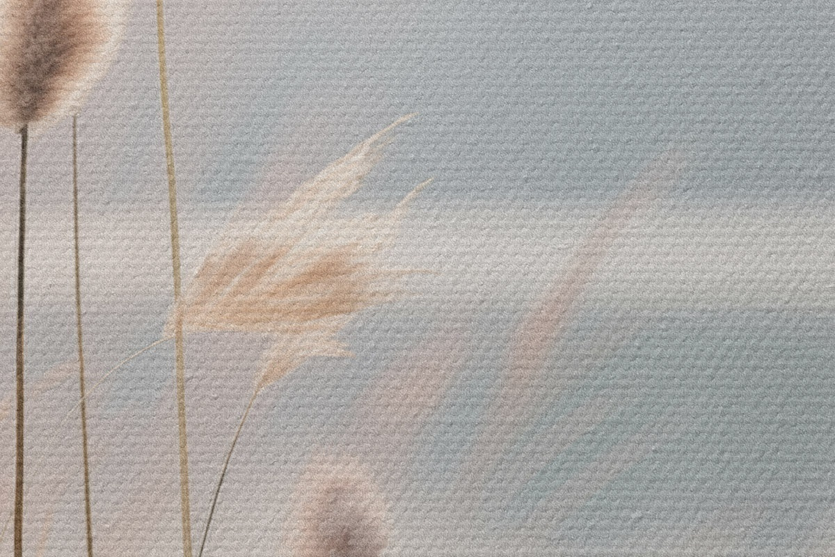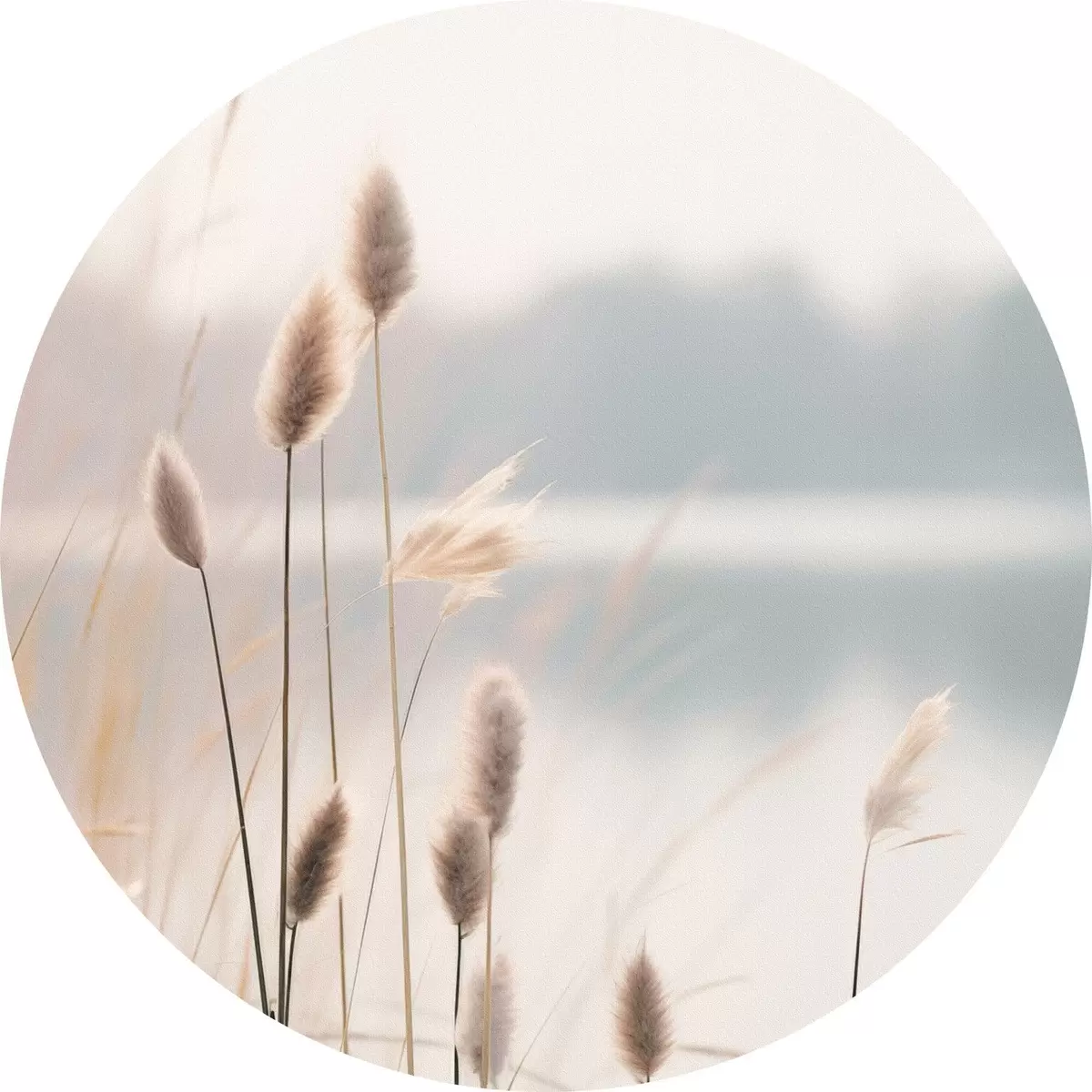 Tableaux rondes Roseaux souples au bord d'un lac brumeux, tons beiges pastel r46504