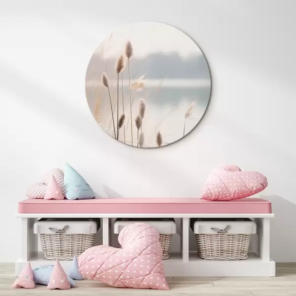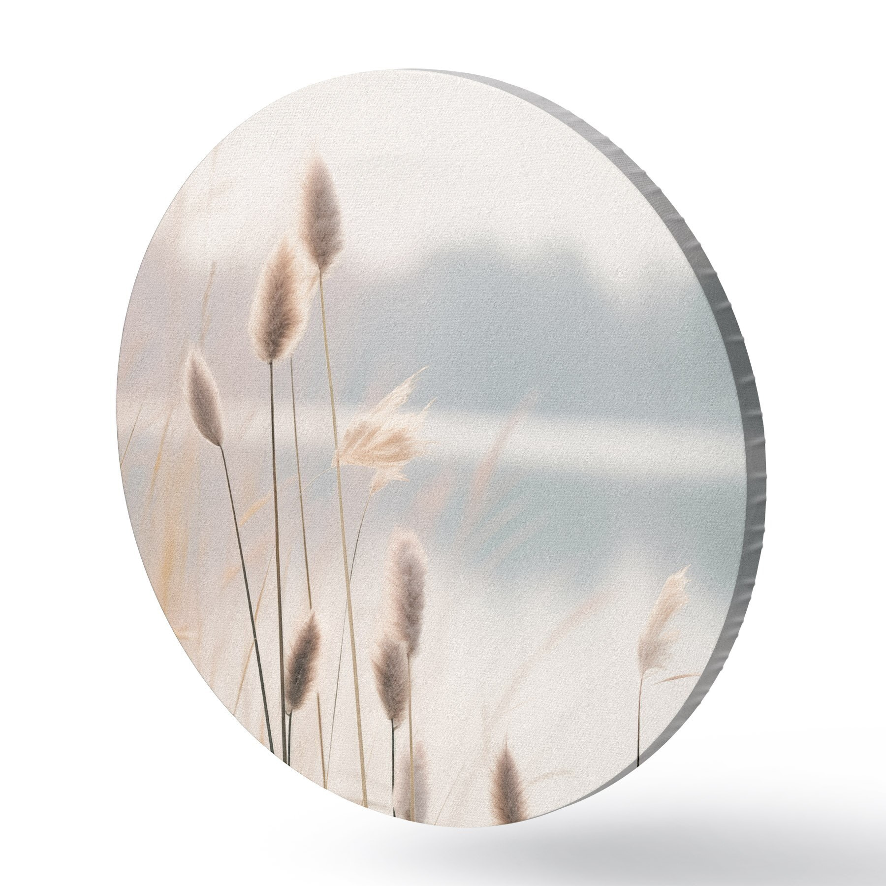 Tableaux rondes Roseaux souples au bord d'un lac brumeux, tons beiges pastel Nr r46504