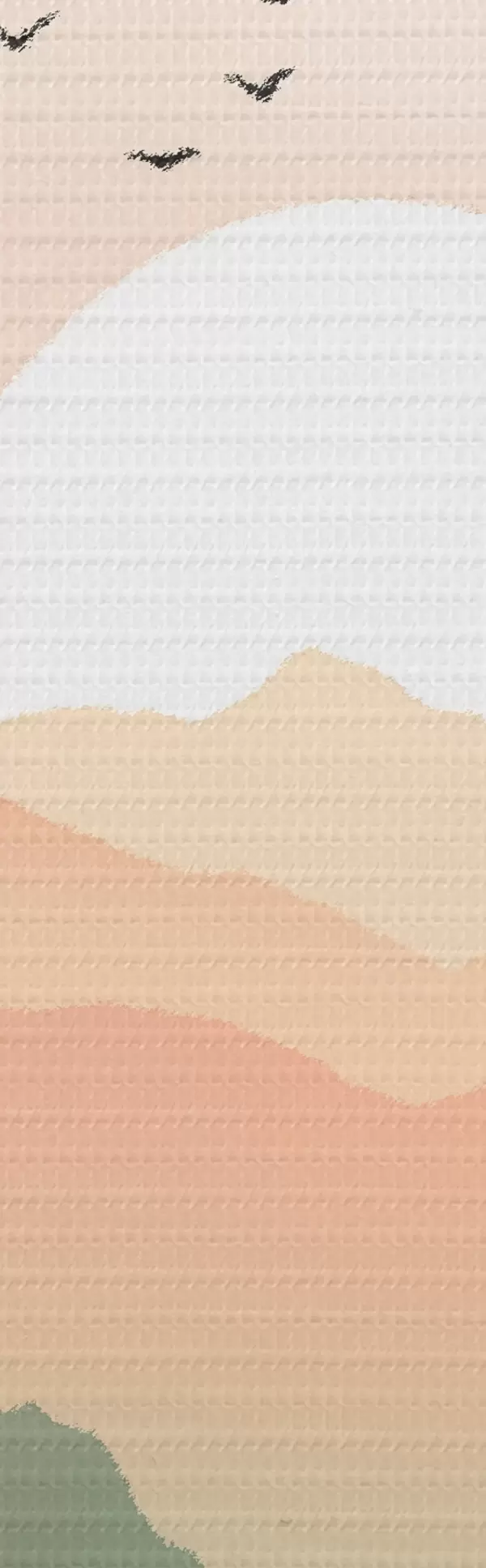 Tableaux rondes Coucher de soleil pastel sur un lac tranquille avec des collines lointaines et des oiseaux Nr r46508
