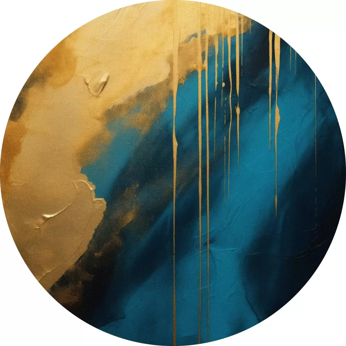 Tableaux rondes Abstrait bleu sarcelle et bleu foncé avec des reflets chauds fluides Nr r46509
