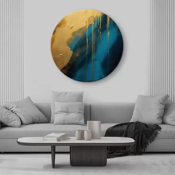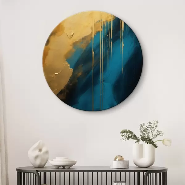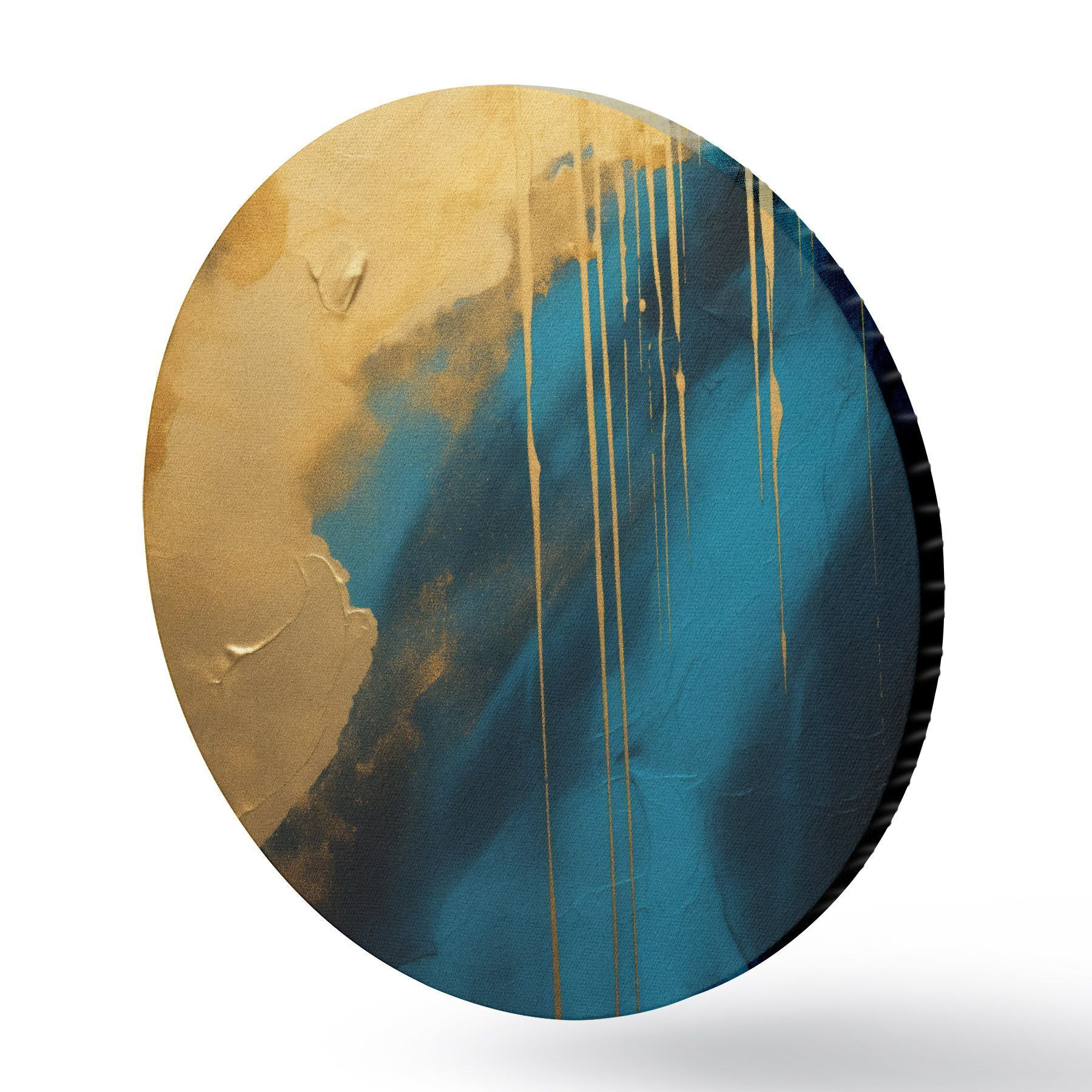 Tableaux rondes Abstrait bleu sarcelle et bleu foncé avec des reflets chauds fluides r46509