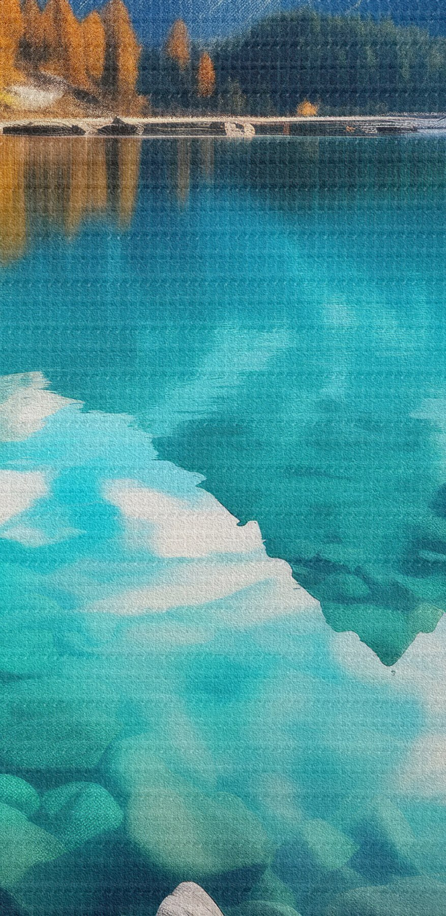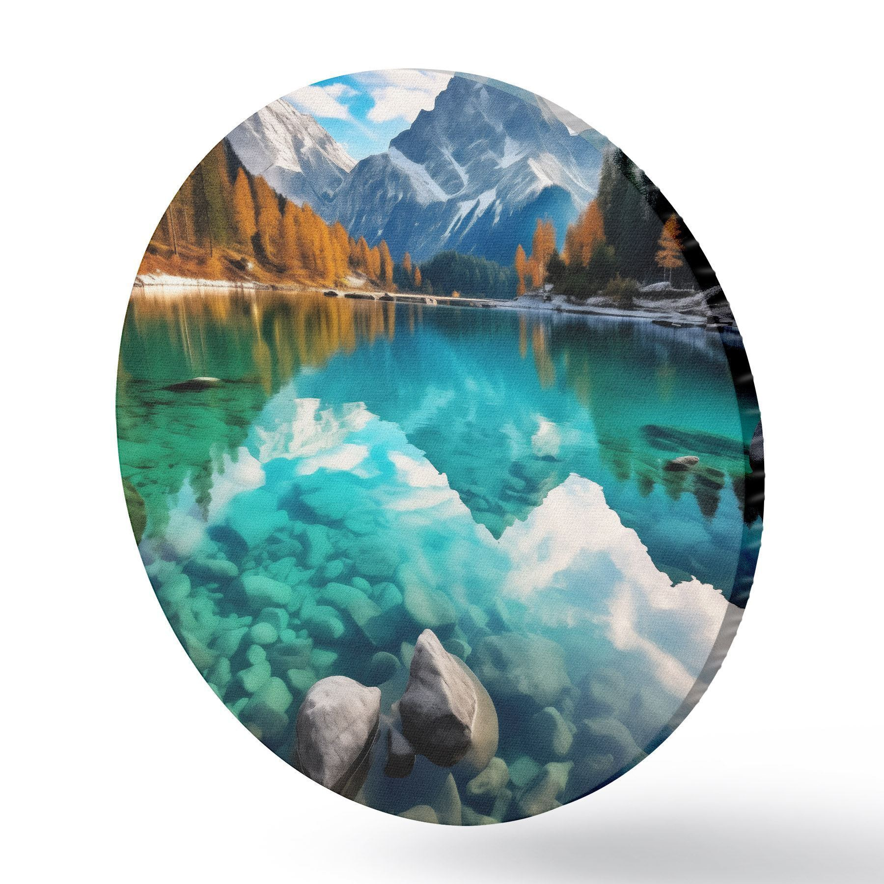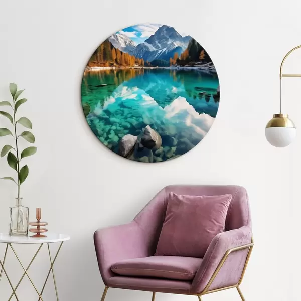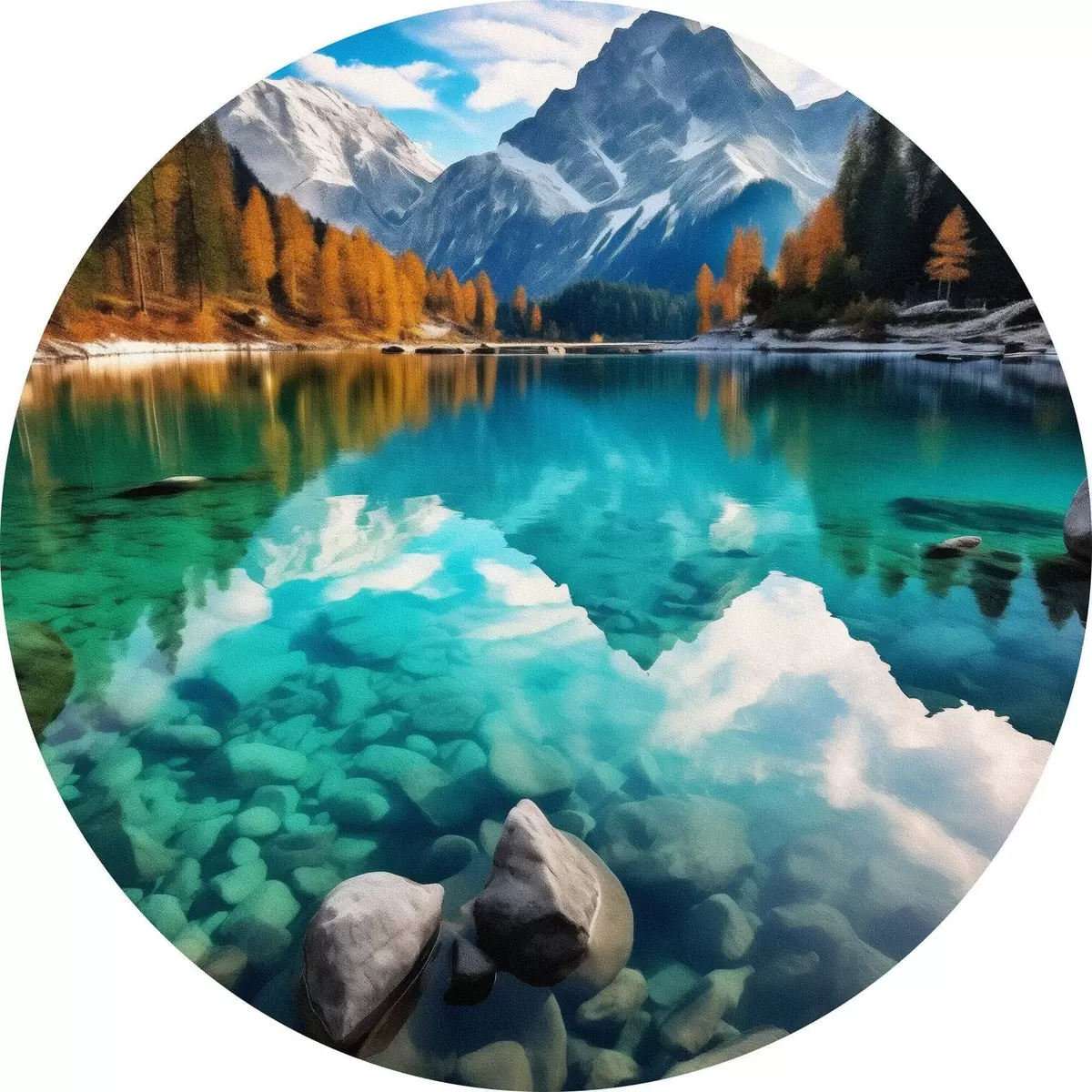 Tableaux rondes Lac de montagne aux eaux turquoise et mélèzes automnaux Nr r46517