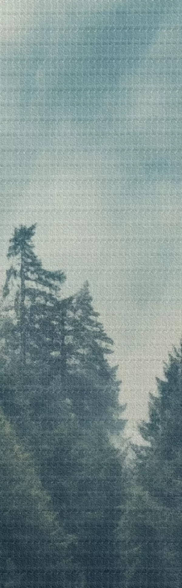 Tableaux rondes Crêtes montagneuses brumeuses et forêt sombre de conifères r46518