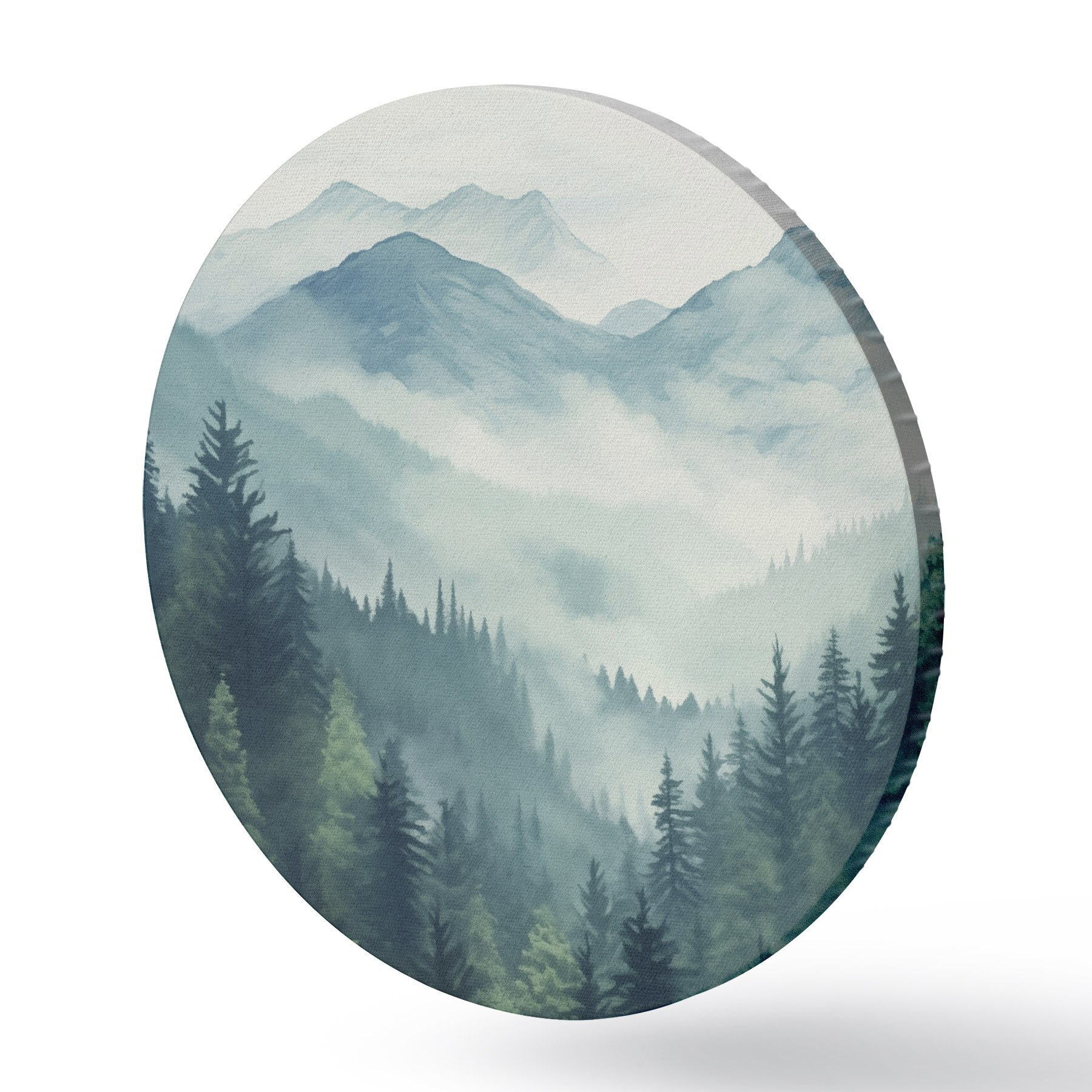 Tableaux rondes Montagnes et forêt aquarellées dans la douce brume matinale Nr r46519
