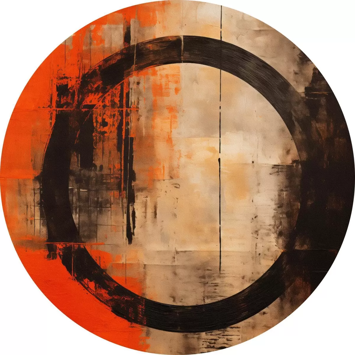 Tableaux rondes Résumé avec un grand cercle noir et des textures chaleureuses Nr r46528
