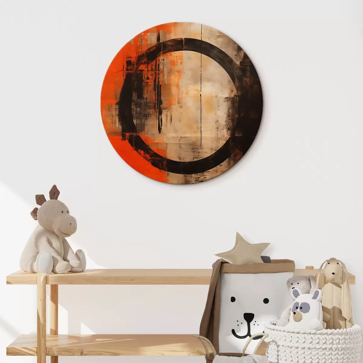 Tableaux rondes Résumé avec un grand cercle noir et des textures chaleureuses r46528
