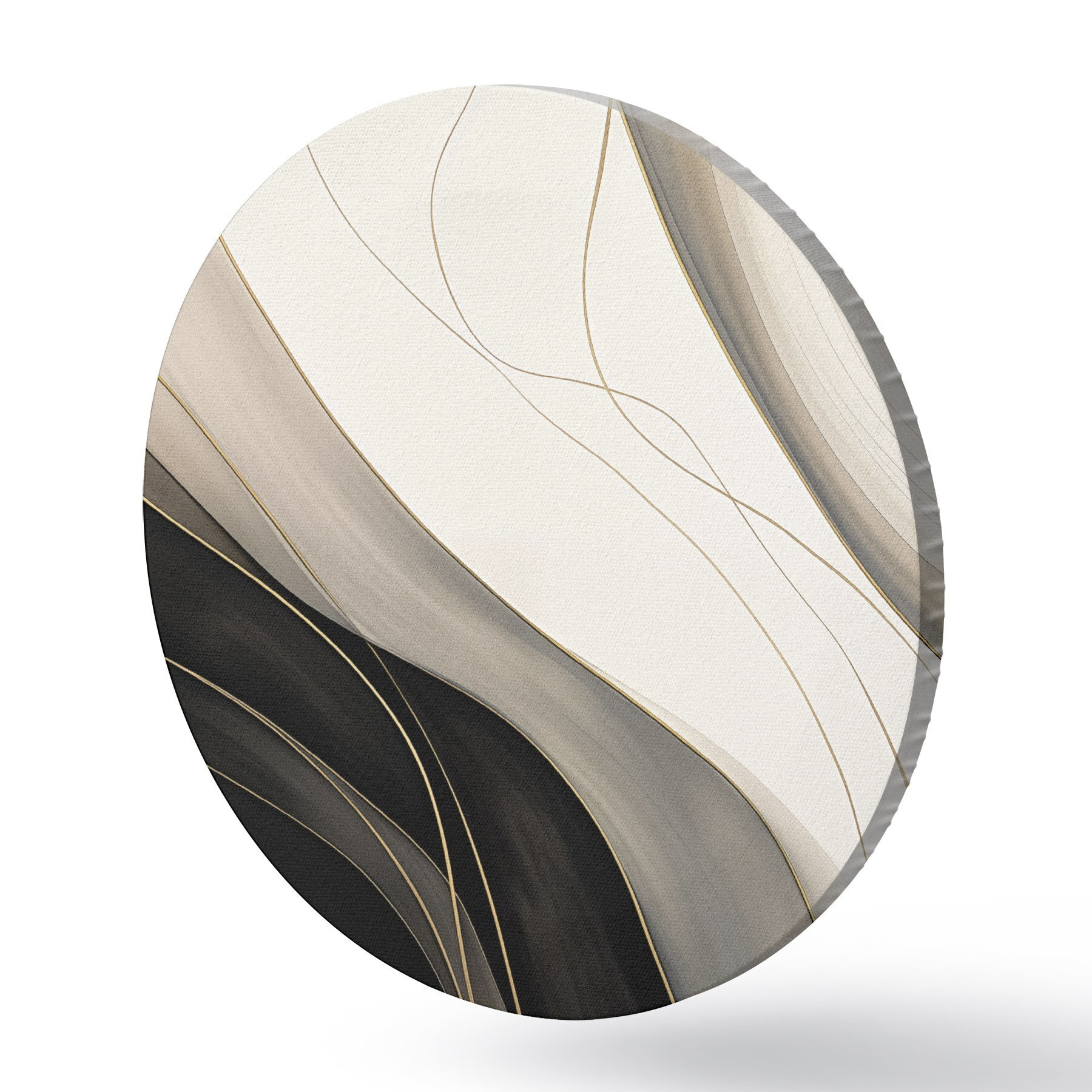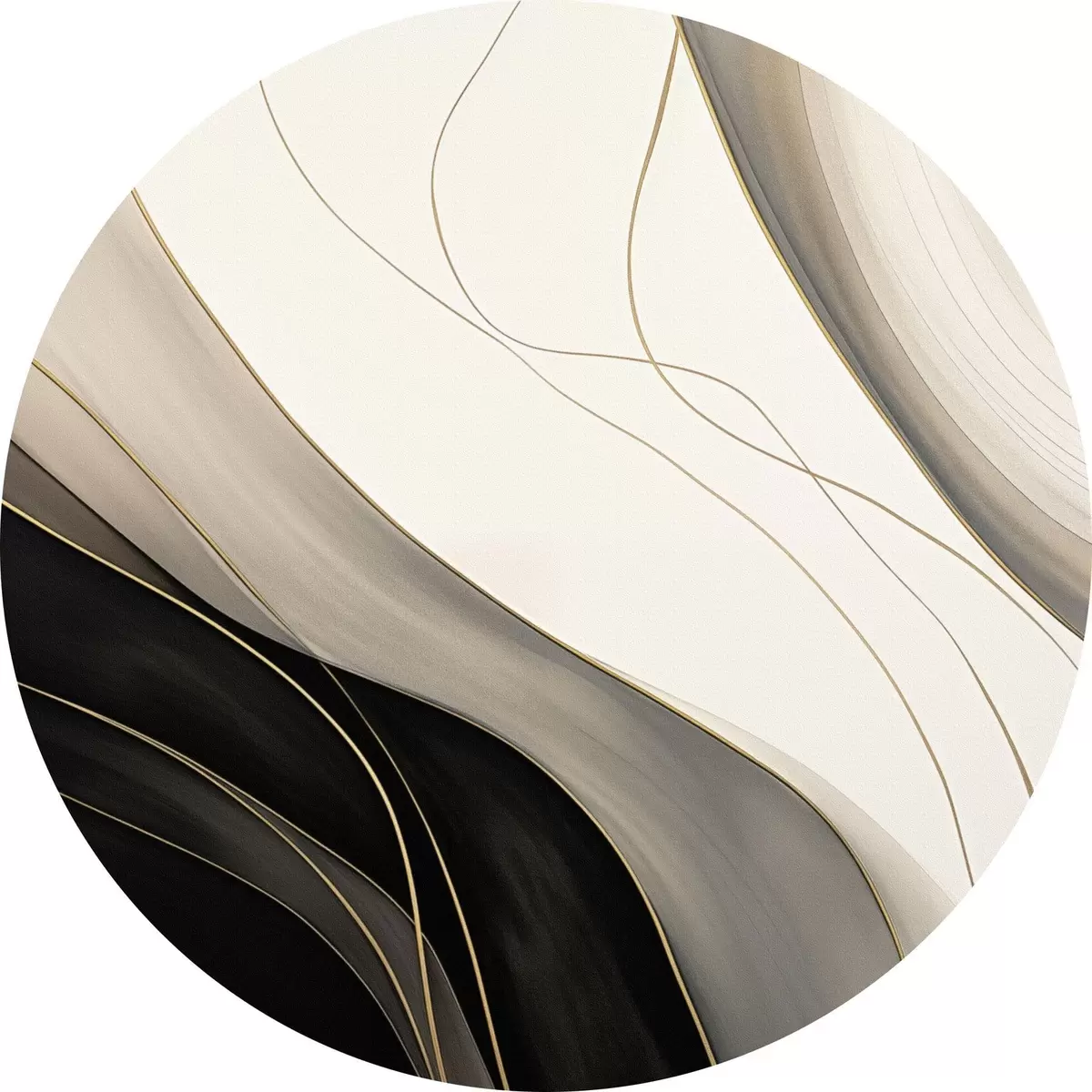 Tableaux rondes Vagues noires et beiges avec de fines lignes ocres Nr r46541
