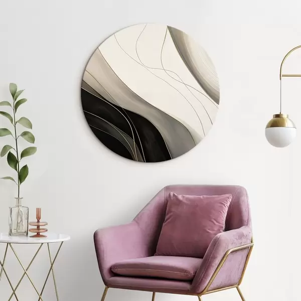 Tableaux rondes Vagues noires et beiges avec de fines lignes ocres r46541