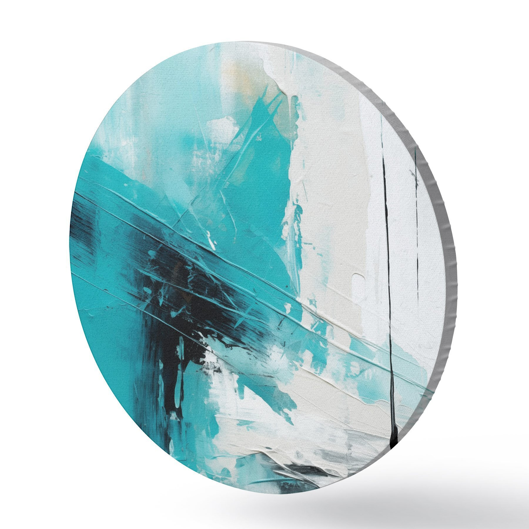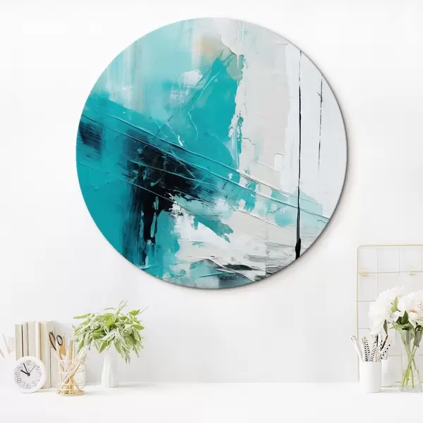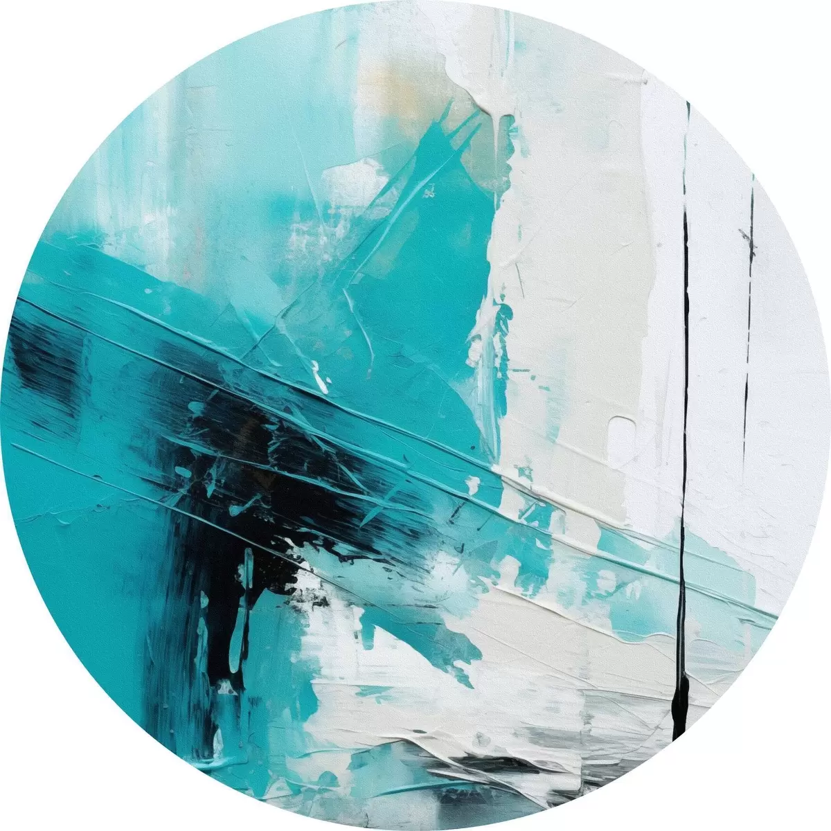 Tableaux rondes Trait turquoise sur fond blanc avec un trait noir Nr r46545