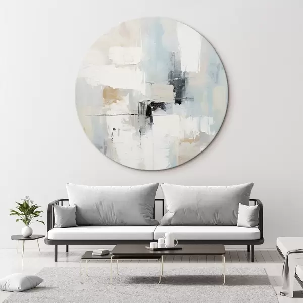 Tableaux rondes Abstrait aux tons clairs avec une touche de noir r46548