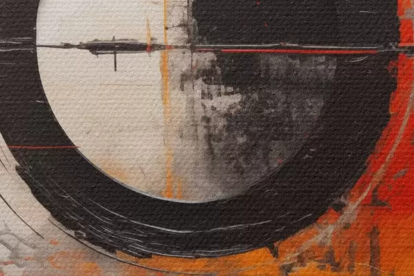 Tableaux rondes Cercle noir sur fond blanc, traits et éclaboussures orange r46549