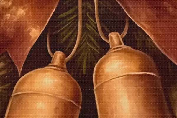 Tableaux rondes Décoration de Noël vintage avec deux cloches et un nœud r46626