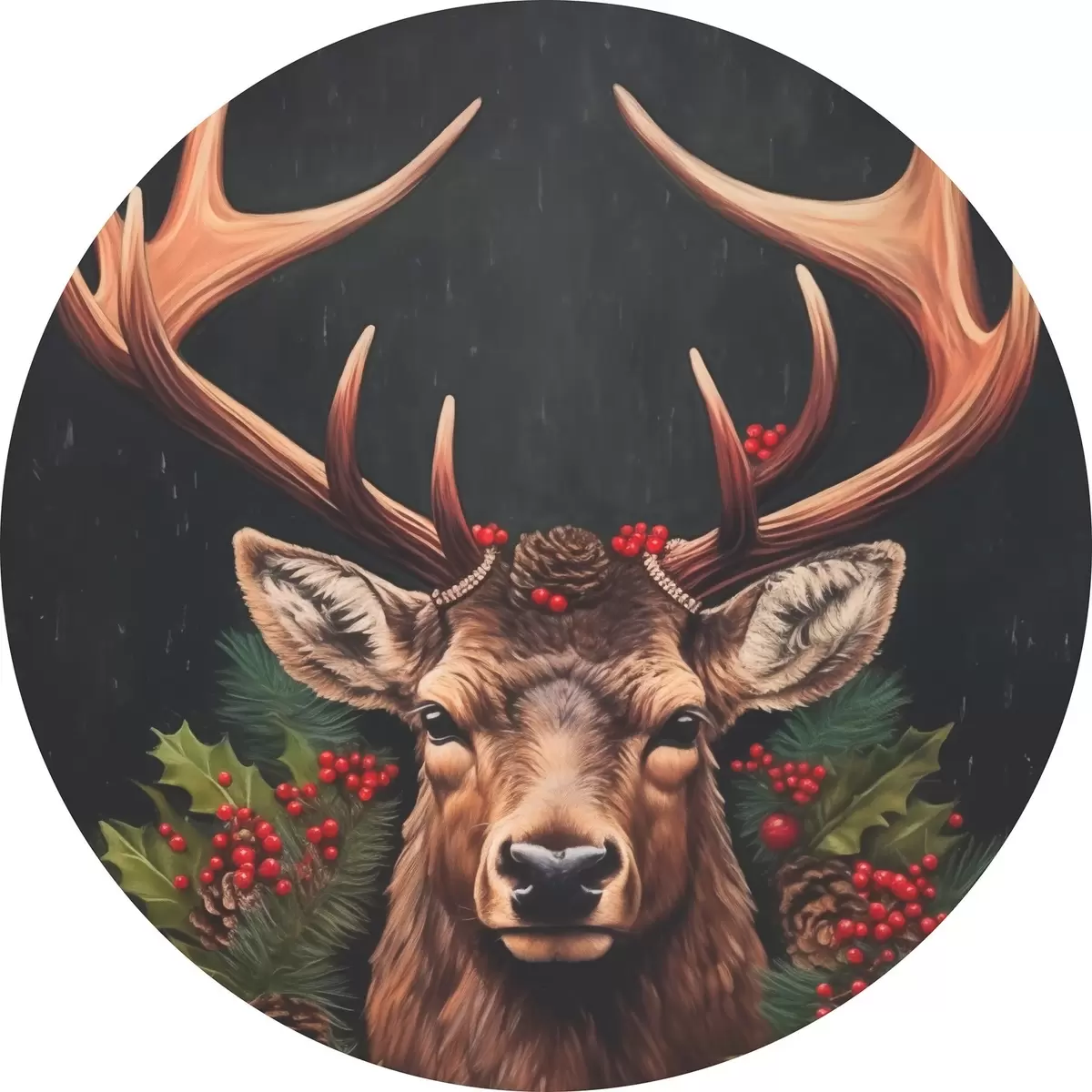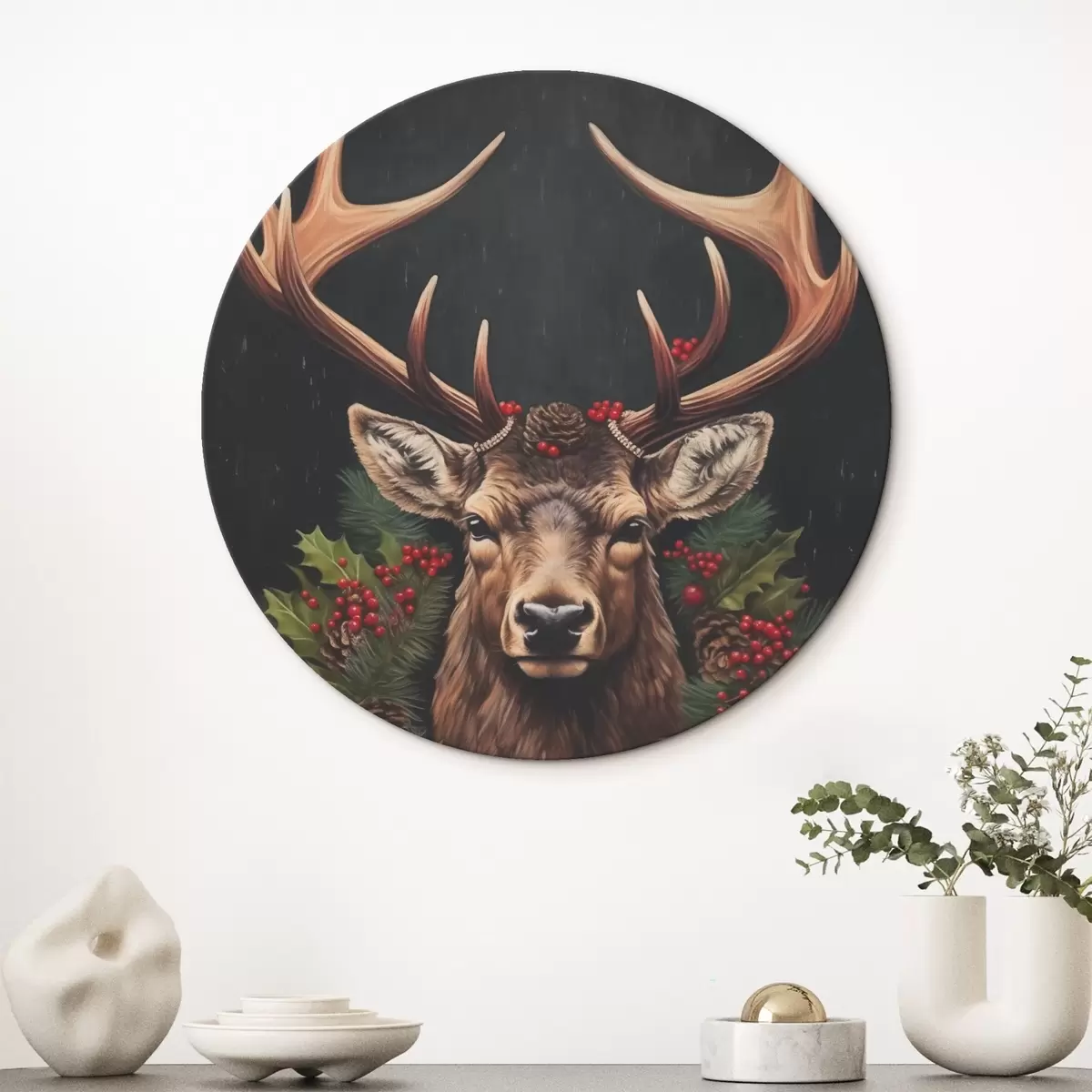 Tableaux rondes Portrait d'un cerf avec une couronne de Noël Nr r46628