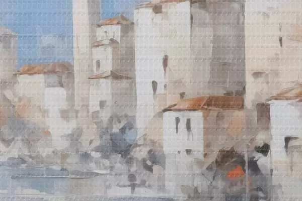 Tableaux rondes Maisons abstraites au bord de la baie imitation de peinture r46673