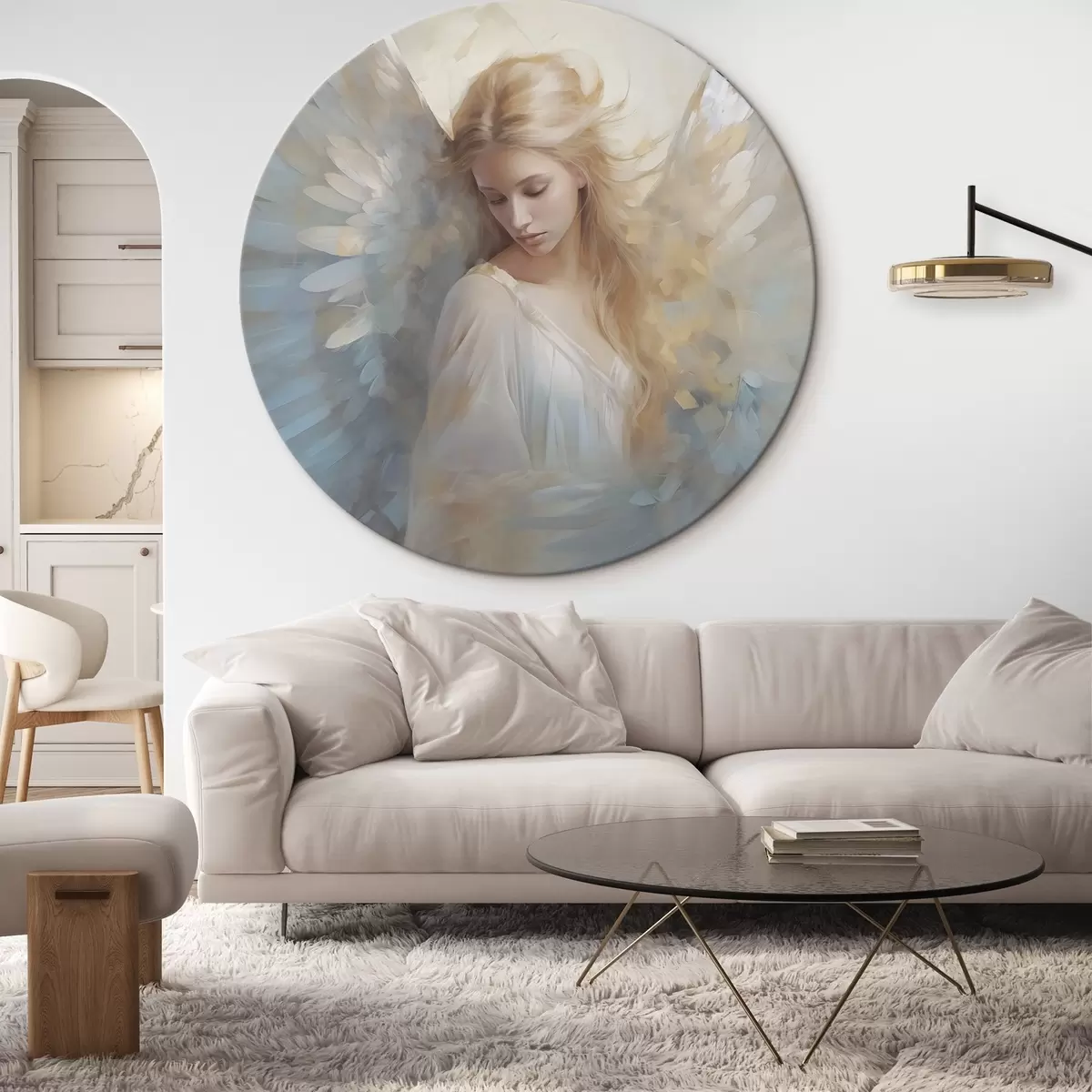 Tableaux rondes Imitation de peinture abstraite représentant un ange Nr r46682