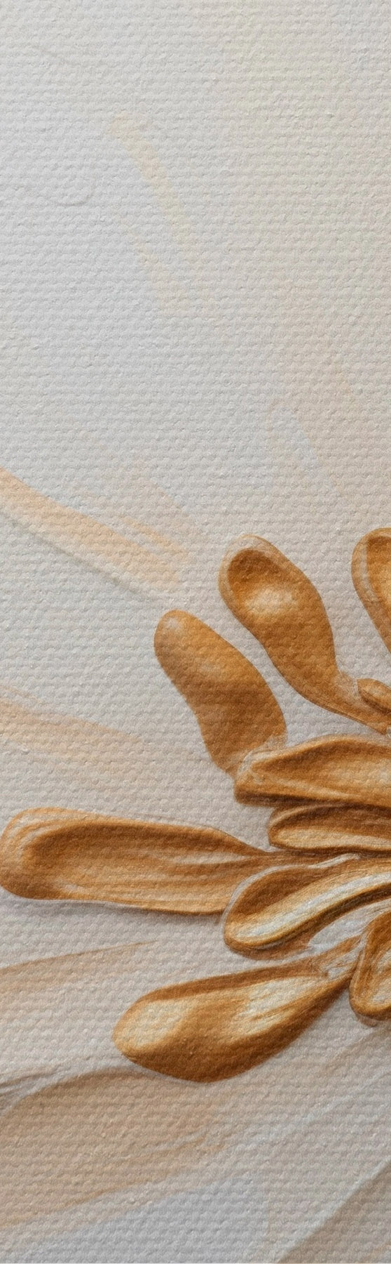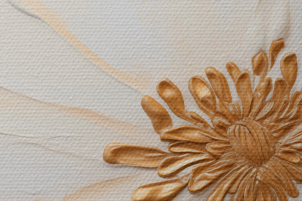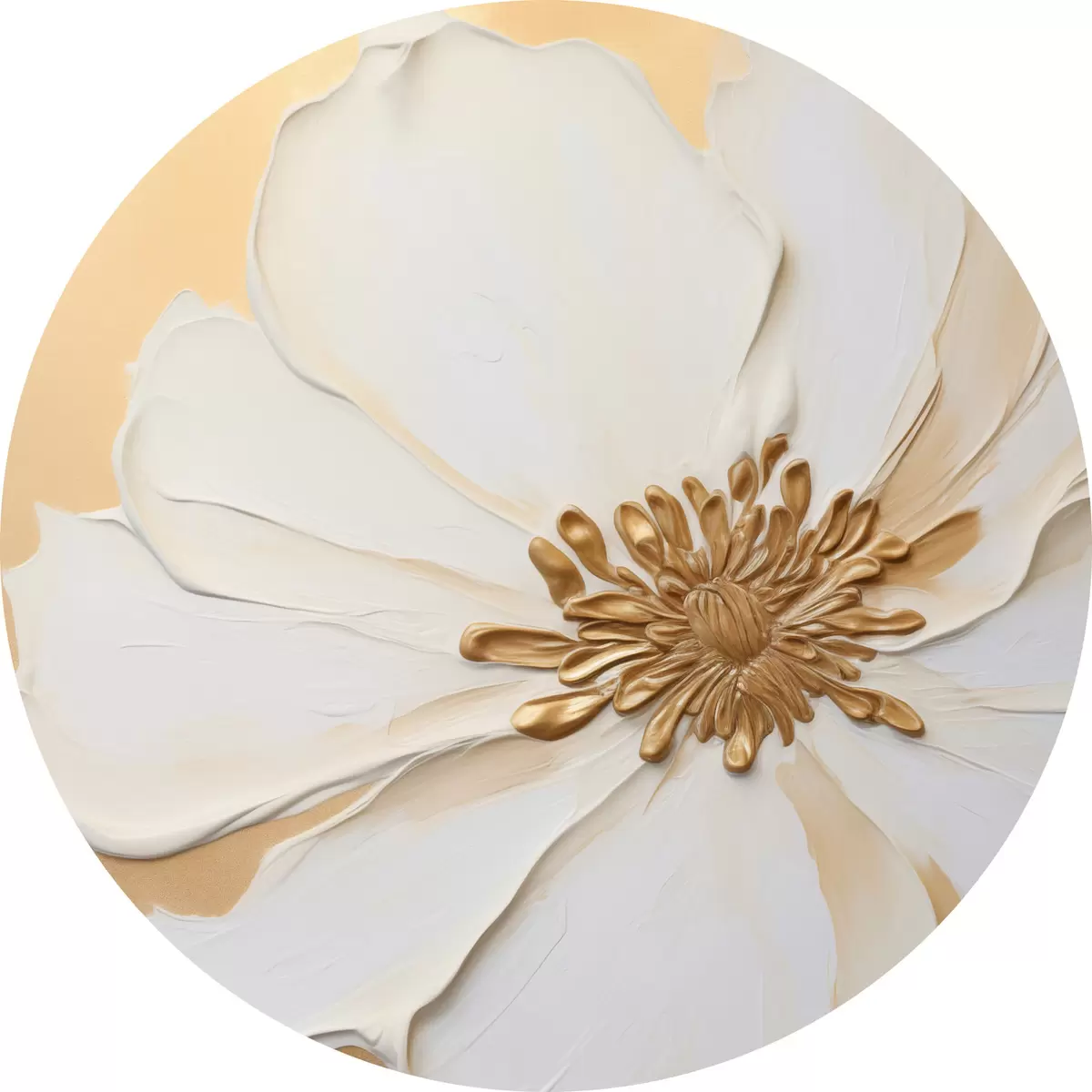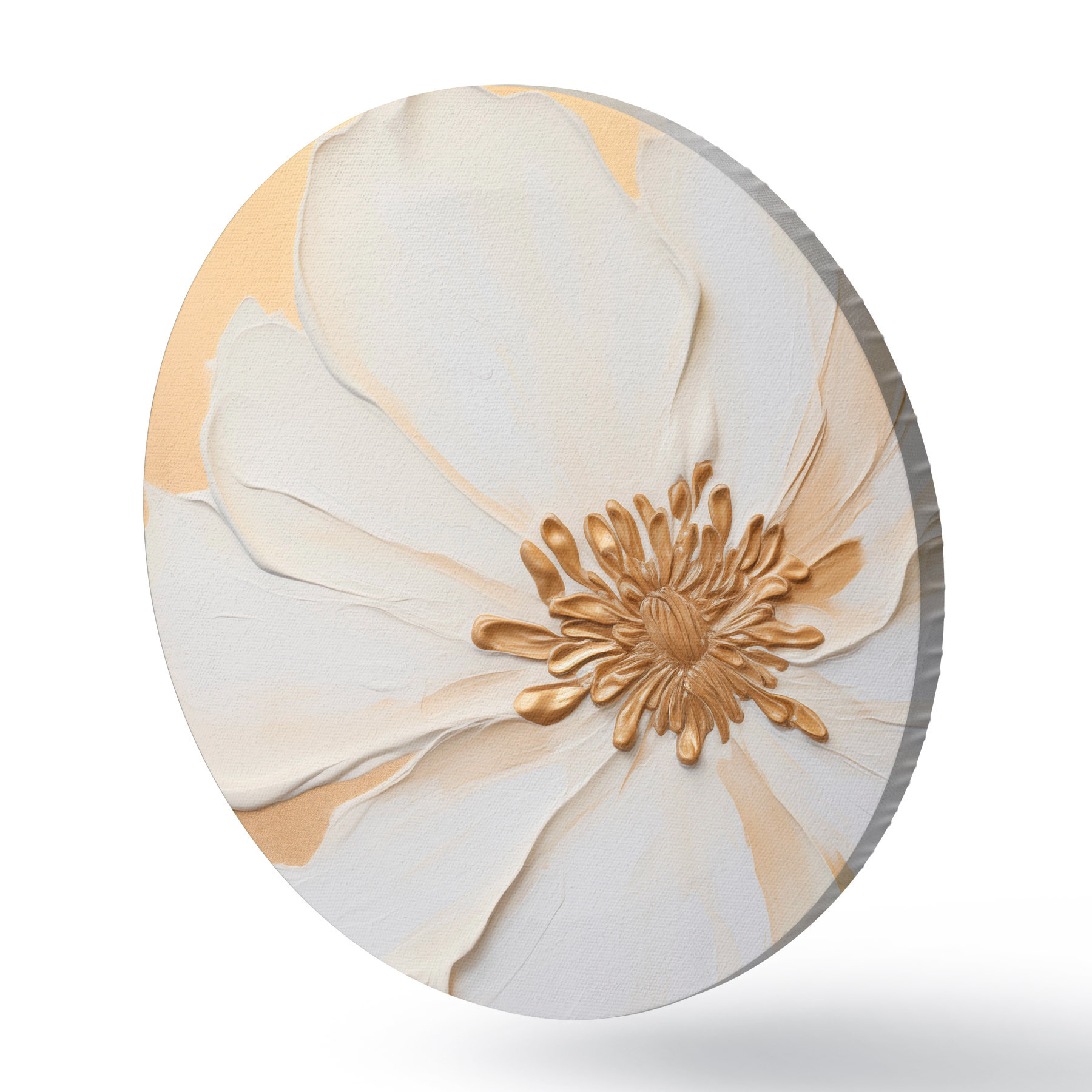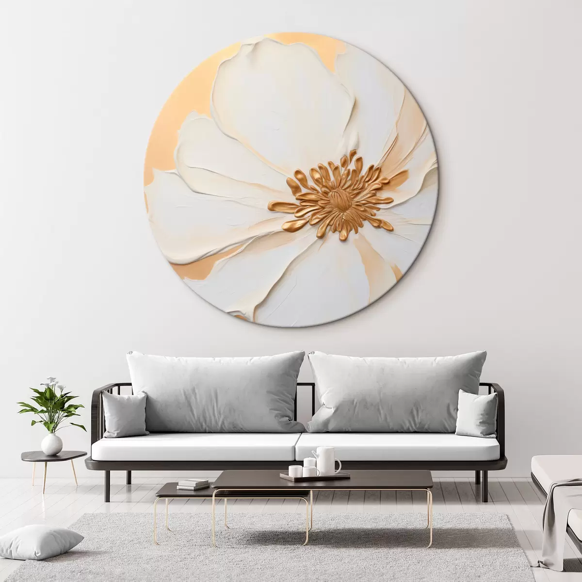 Tableaux rondes Fleur blanche aux pétales délicats, imitation coups de pinceau épais, sur fond texturé orange clair. Nr r46691