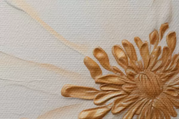 Tableaux rondes Fleur blanche aux pétales délicats, imitation coups de pinceau épais, sur fond texturé orange clair. r46691
