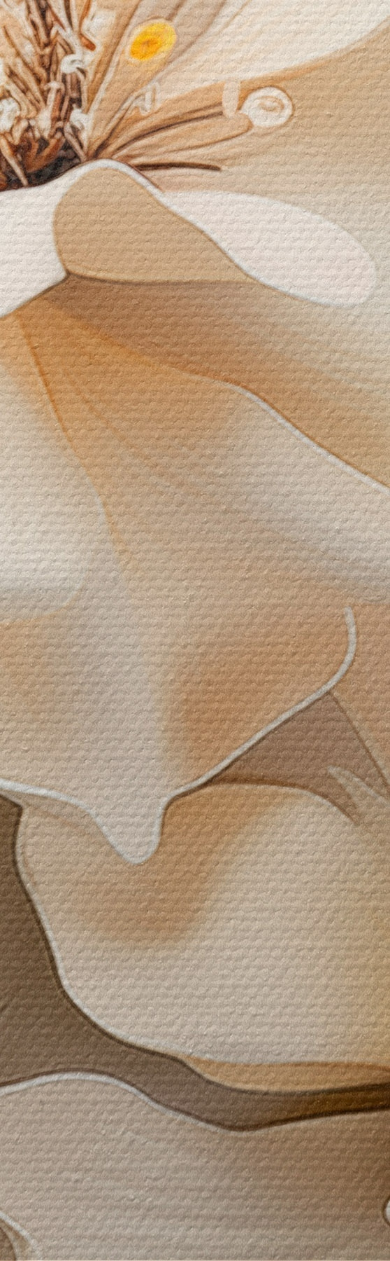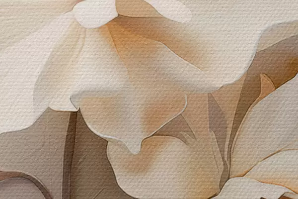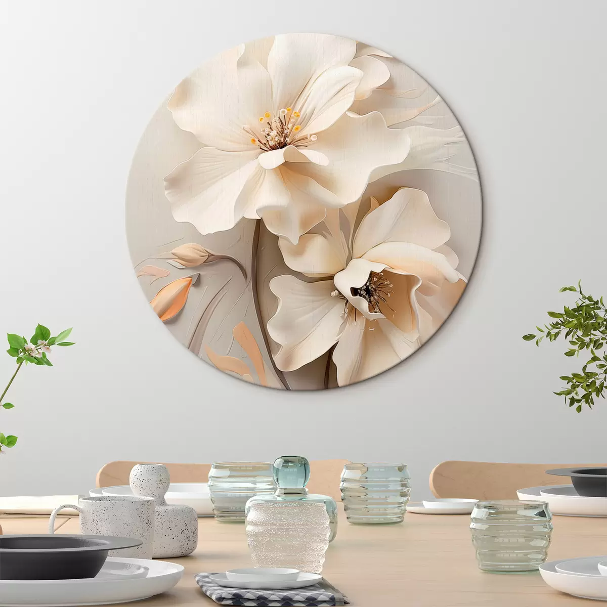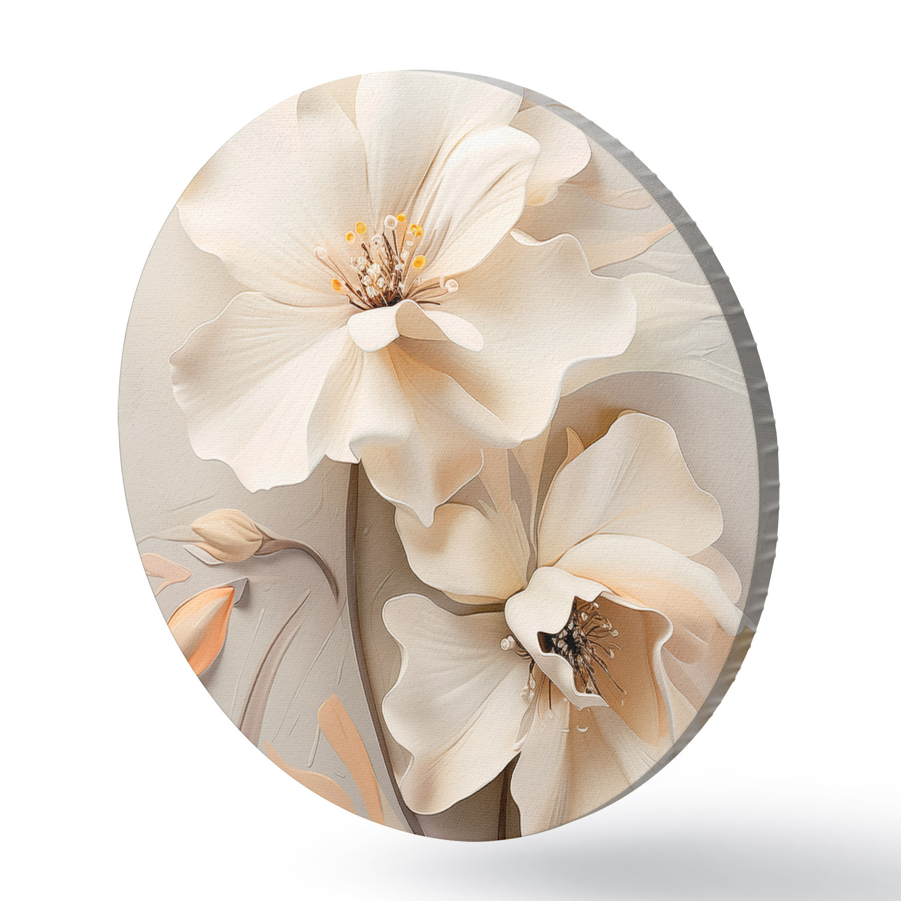 Tableaux rondes Fleurs blanches, pétales aux ombres douces, fond beige clair, composition élégante, style minimaliste Nr r46700