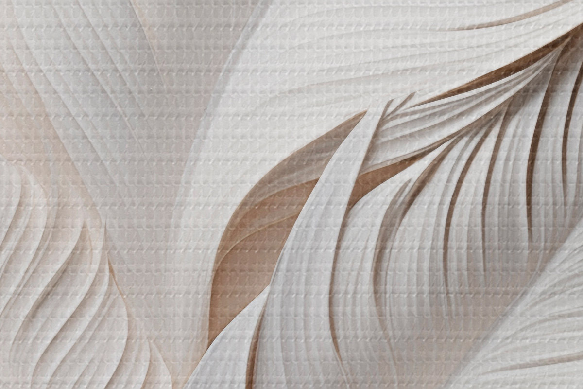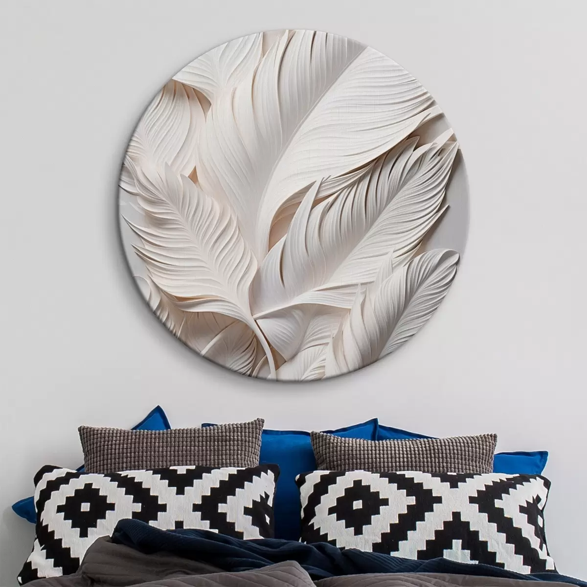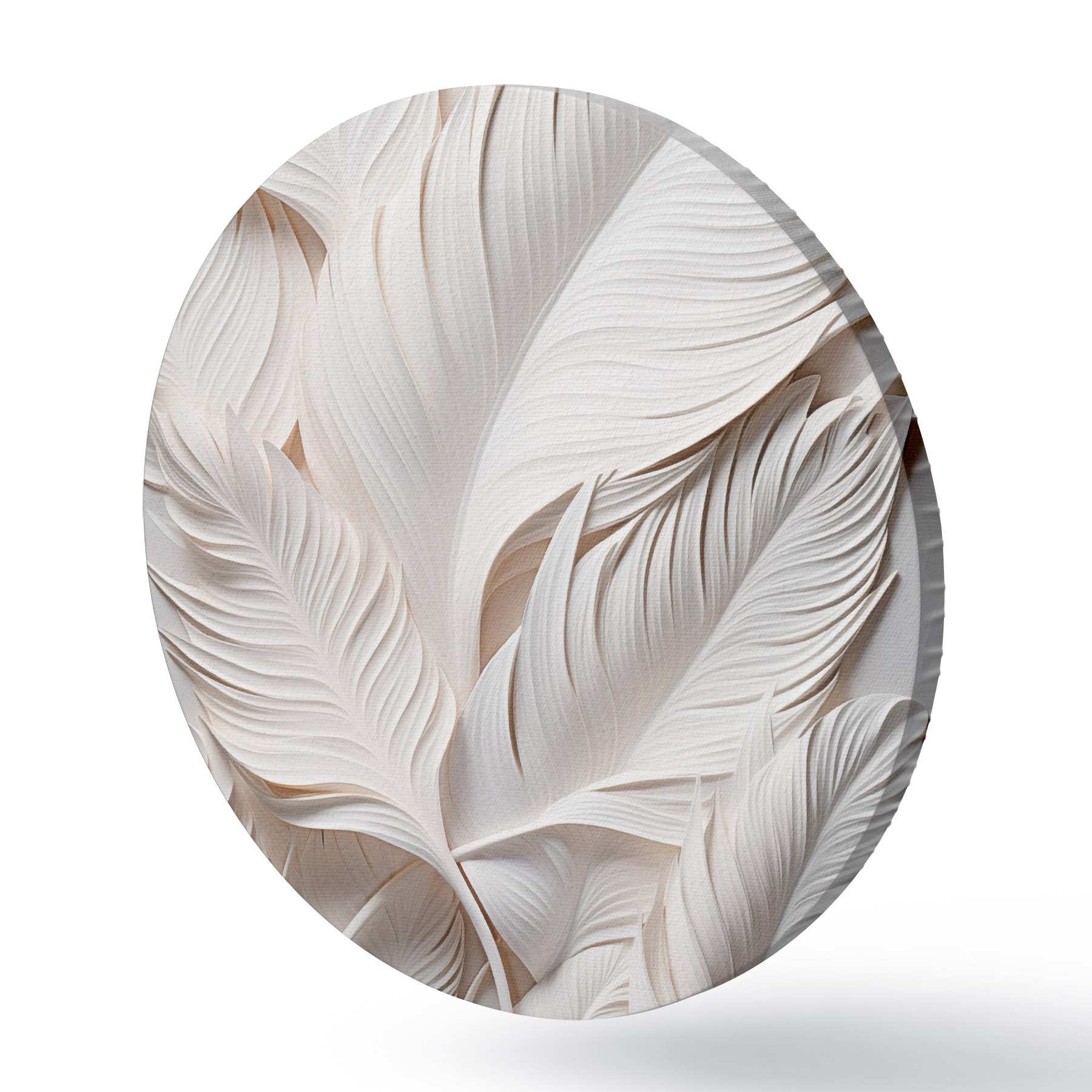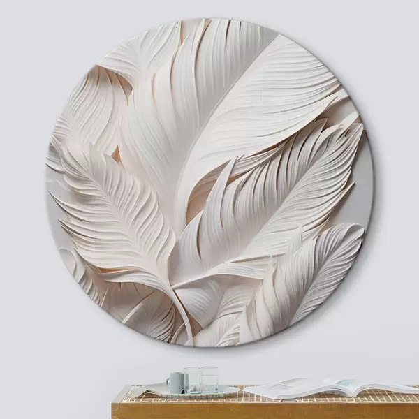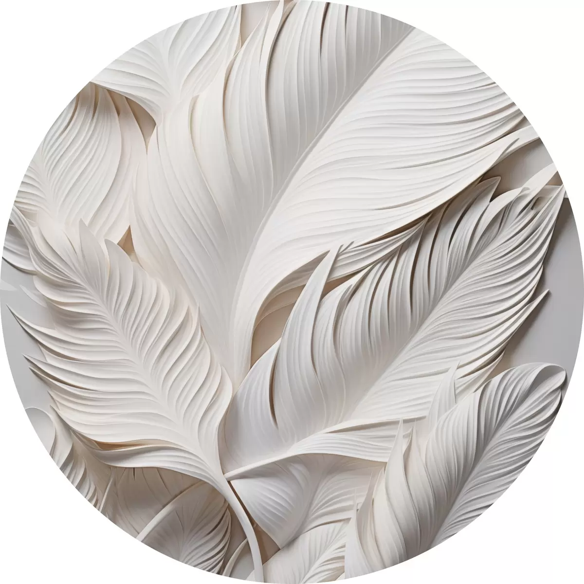 Tableaux rondes Feuilles blanches aux détails complexes, créant un effet texturé et stratifié, art minimaliste r46706