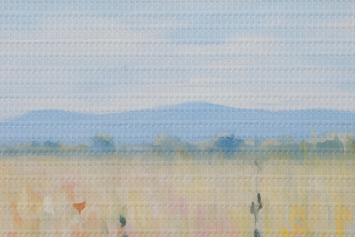 Le tissage fin des fils de cette toile ressemble à la surface des toiles d'artistes professionnels.
