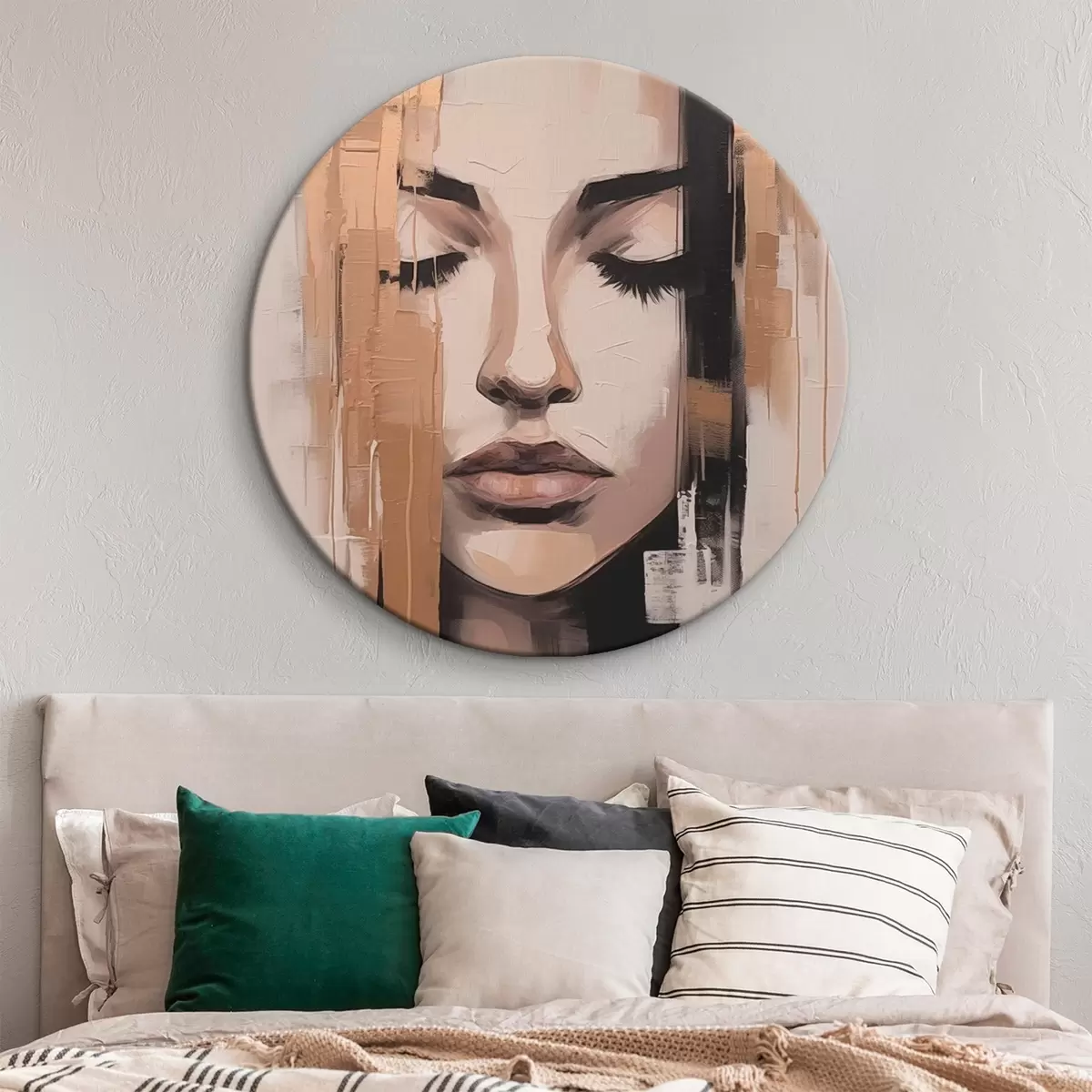 Tableaux rondes Portrait d'une femme. Coups de pinceau abstraits. Nr r46733
