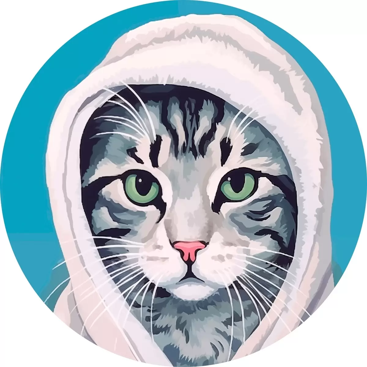 Tableaux rondes Chat rayé dans une serviette blanche Nr r46740