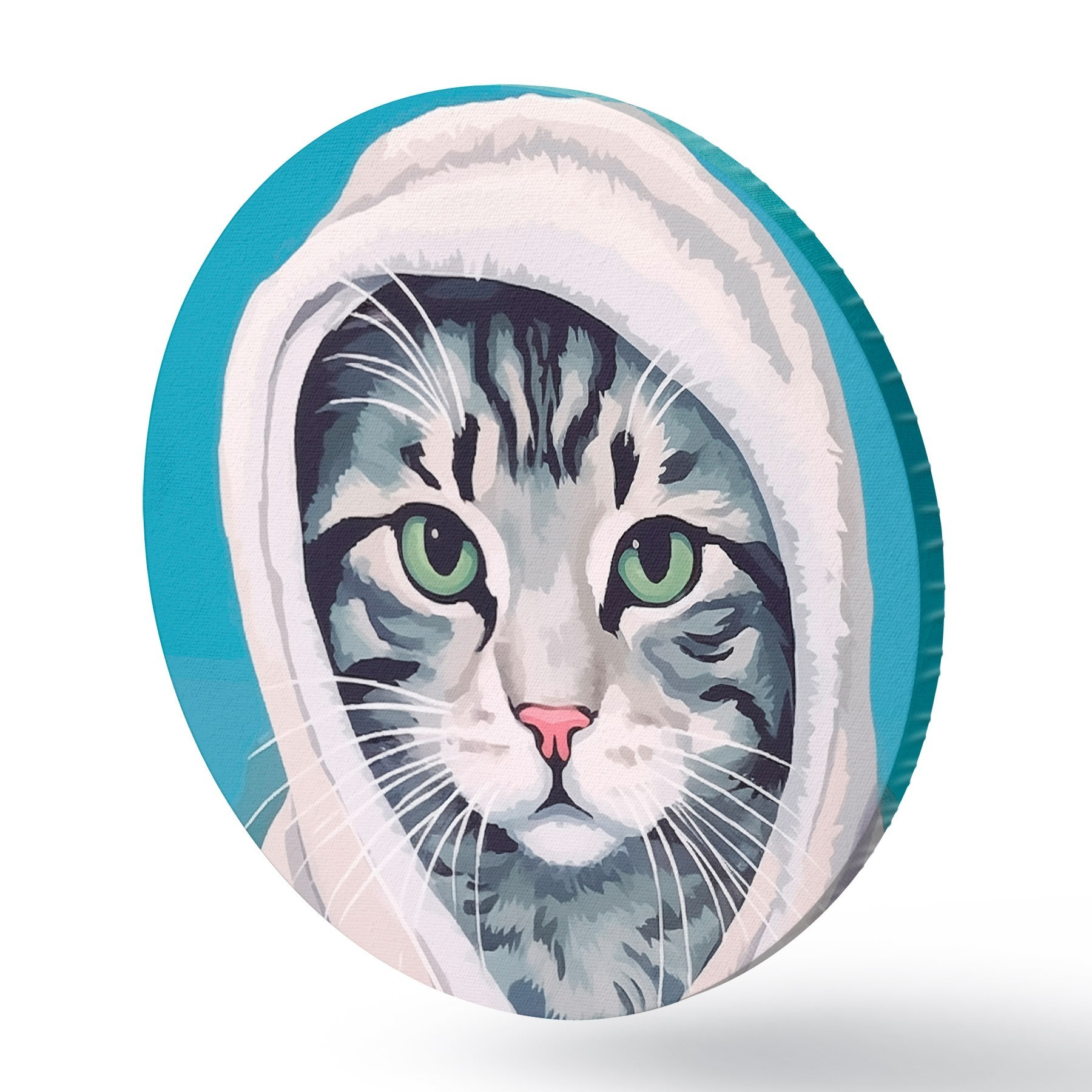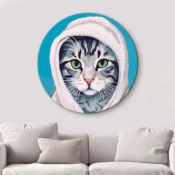 Tableaux rondes Chat rayé dans une serviette blanche r46740