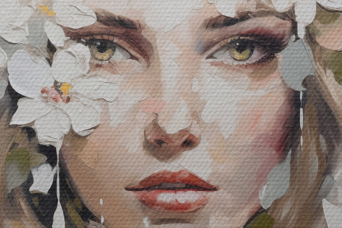 Trois types de matériaux peuvent être commandés : Economic Canvas - matériau dense et durable pour l'impression numérique, identique à la toile de peintre, surface imperméable, reproduction réaliste des détails, matériau à grain moyen. Premium Canvas - la texture ressemble à celle d'une toile de peintre (petits fils entrelacés). Reproduction douce et détaillée de l'image sur une surface mate. Eco-Premium - tissu 100 % coton de haute qualité. Grâce aux fibres naturelles de coton, le matériau est durable et résistant à l'usure. Excellente reproduction des couleurs et des détails.