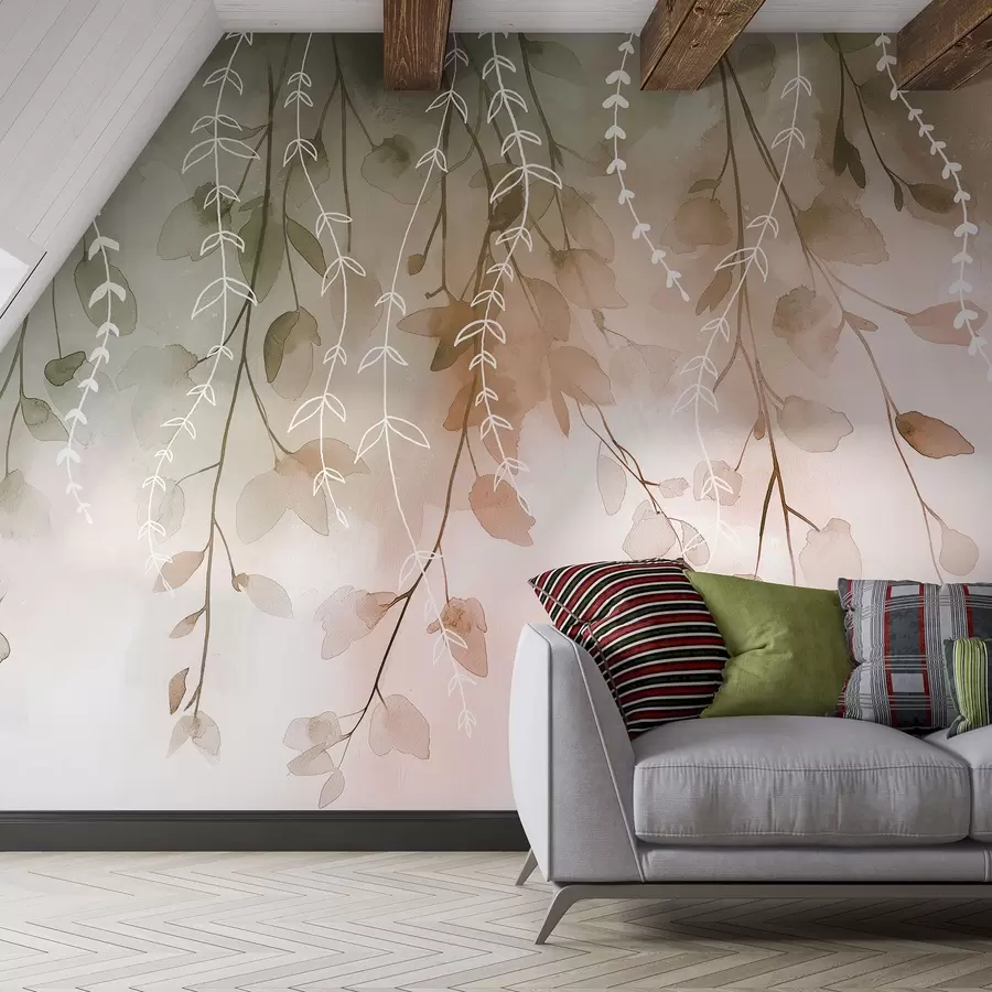 Fleurs et feuilles délicates dans les tons blanc, marron et beige fond floral, couleurs douces, pétales délicats